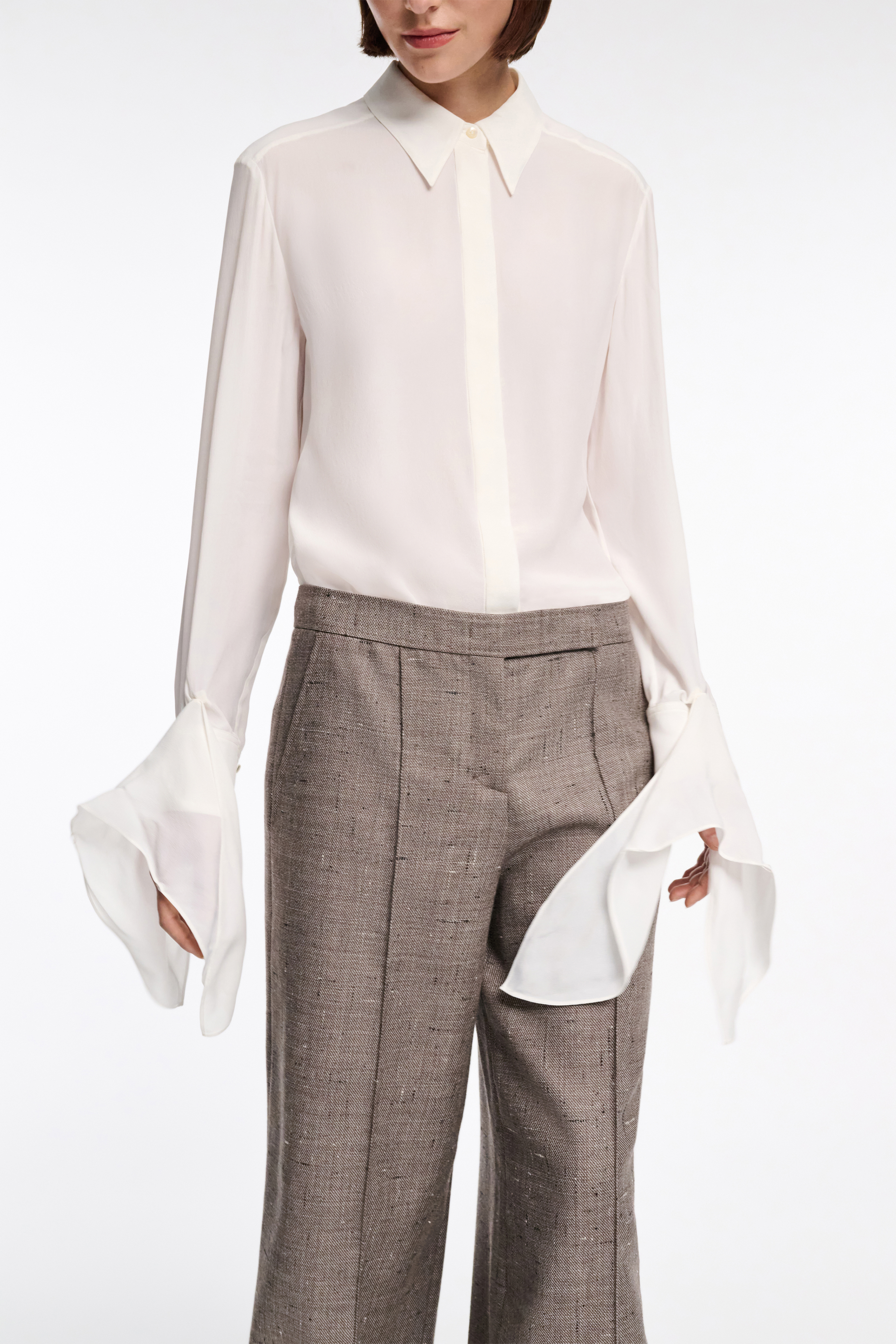 Ein klassischer Hemdkragen und eine verdeckte Knopfleiste zeichnen das Essential aus.