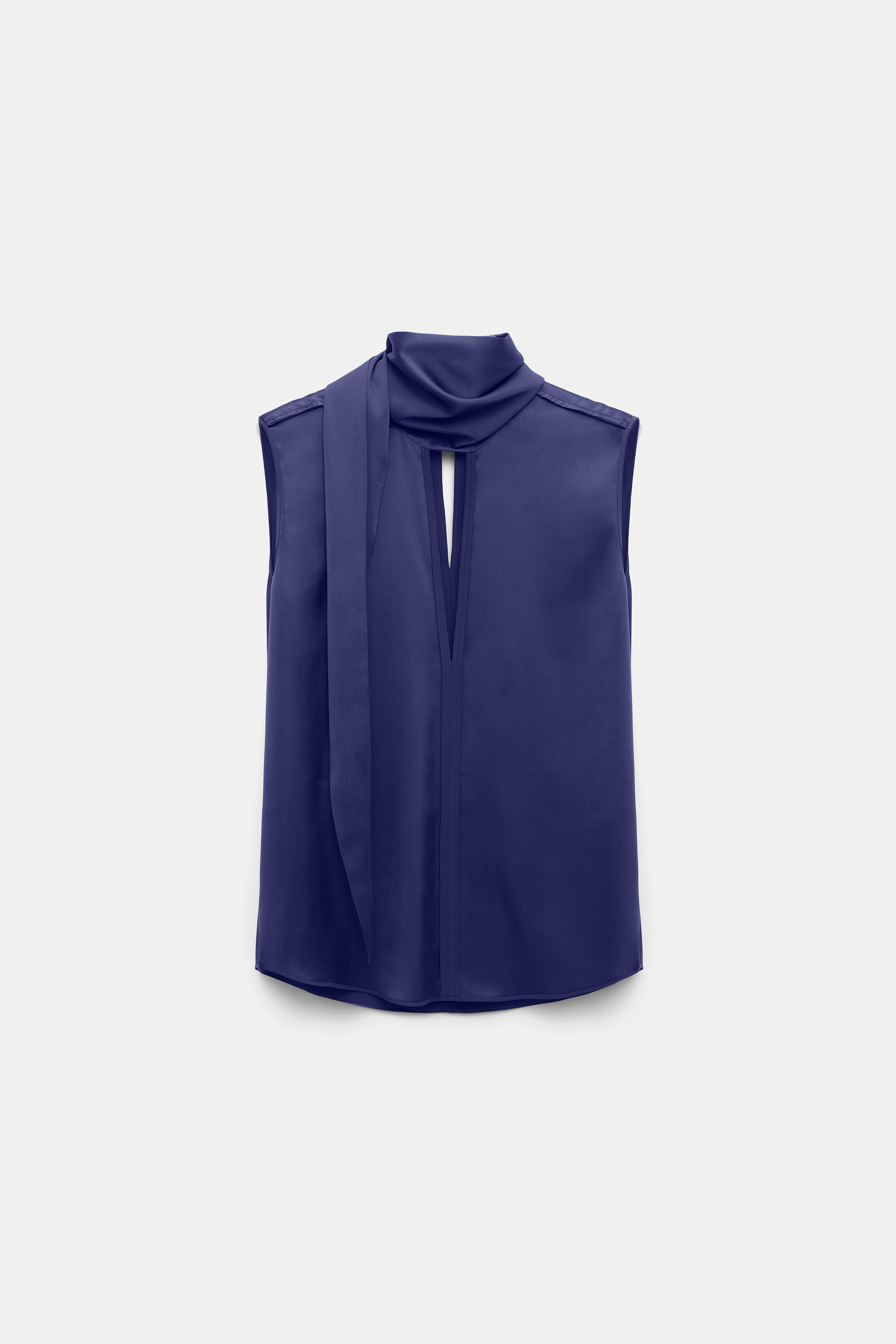 Die ärmellose Bluse ist aus Seidensatin gefertigt und hat einen entspannten Fit.