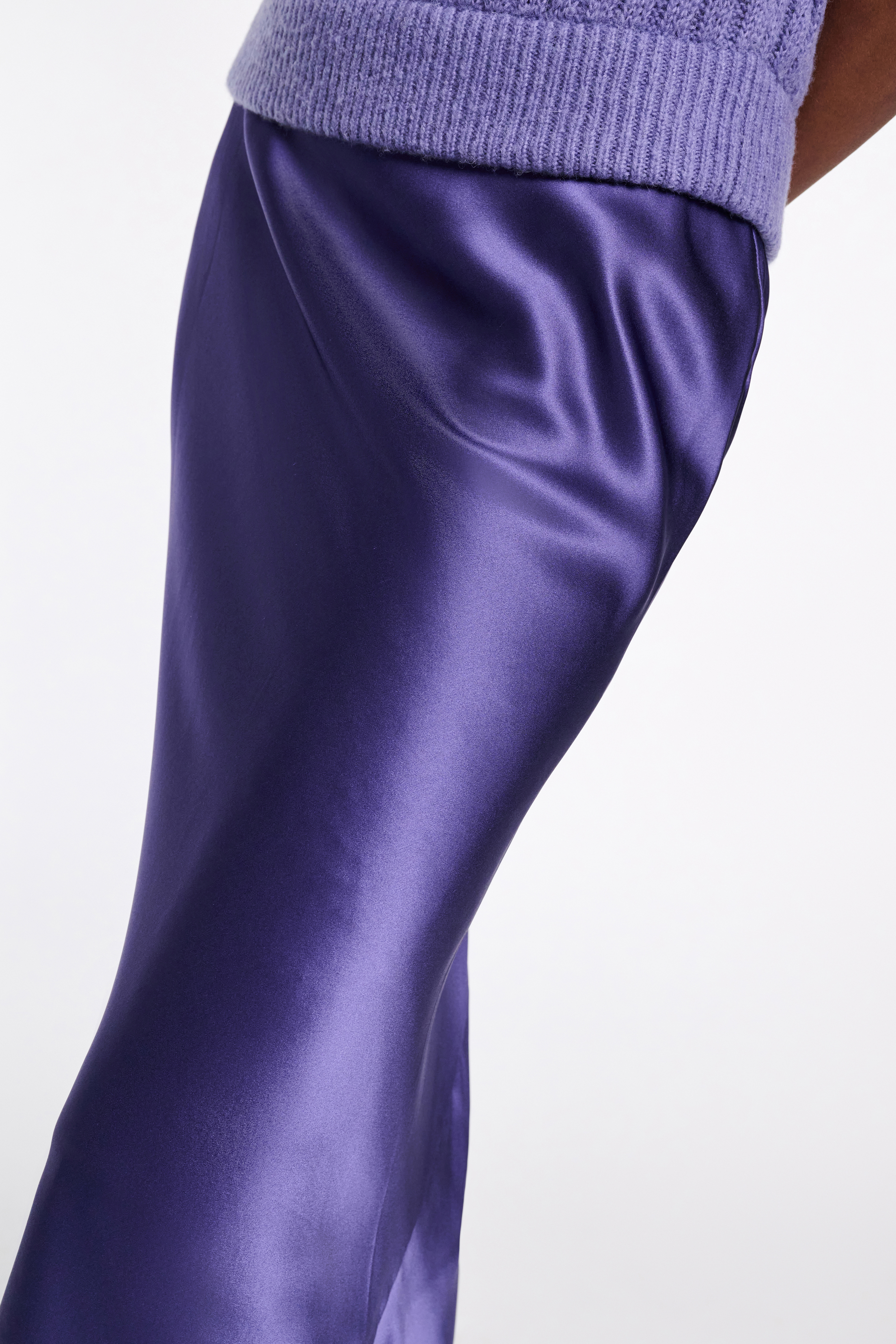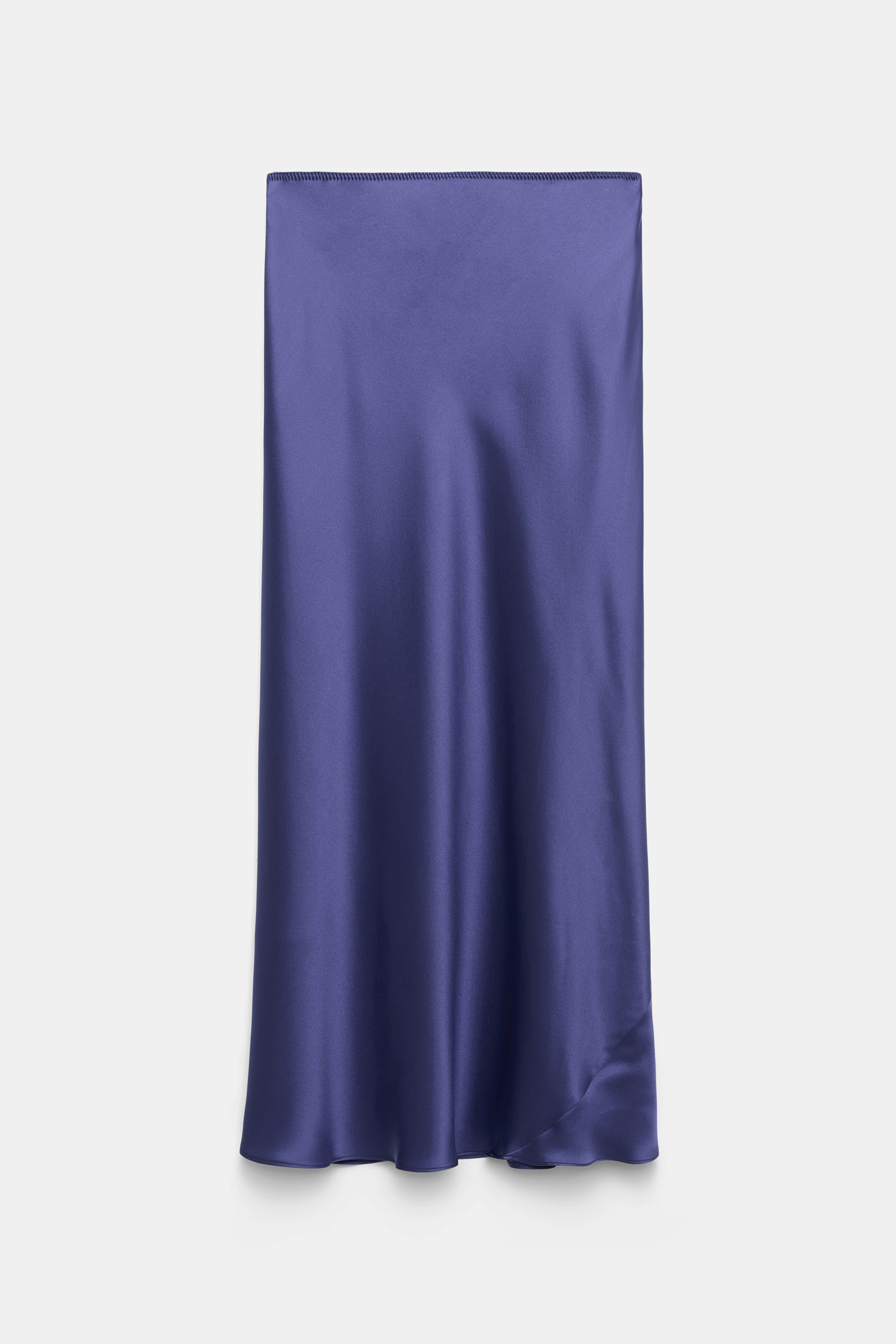 Der Rock ist aus Seidensatin gefertigt und überzeugt mit einem eleganten Bias-Cut.