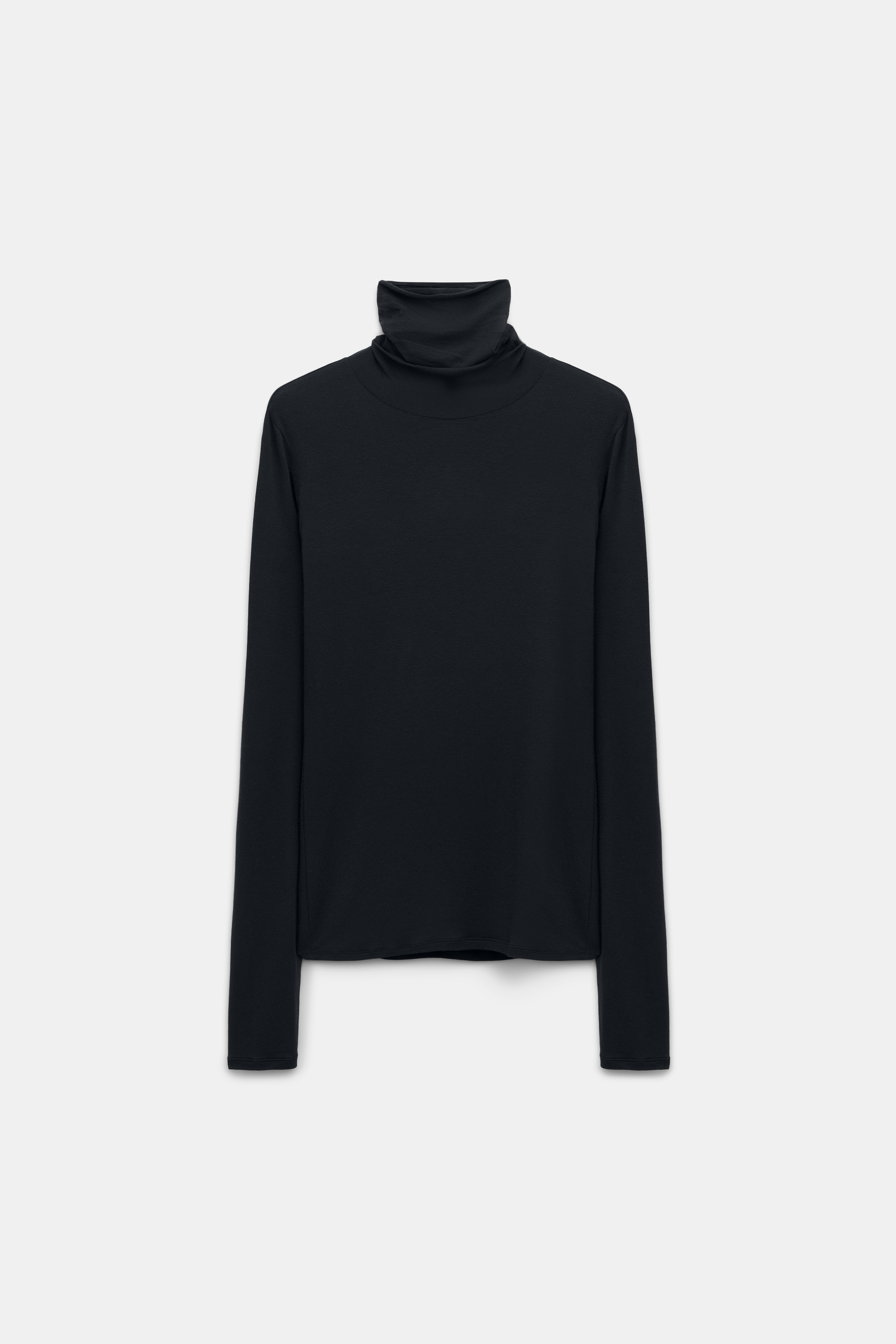 Der Rollkragen mit geschnittener Kante sorgt für einen lässigen Touch.