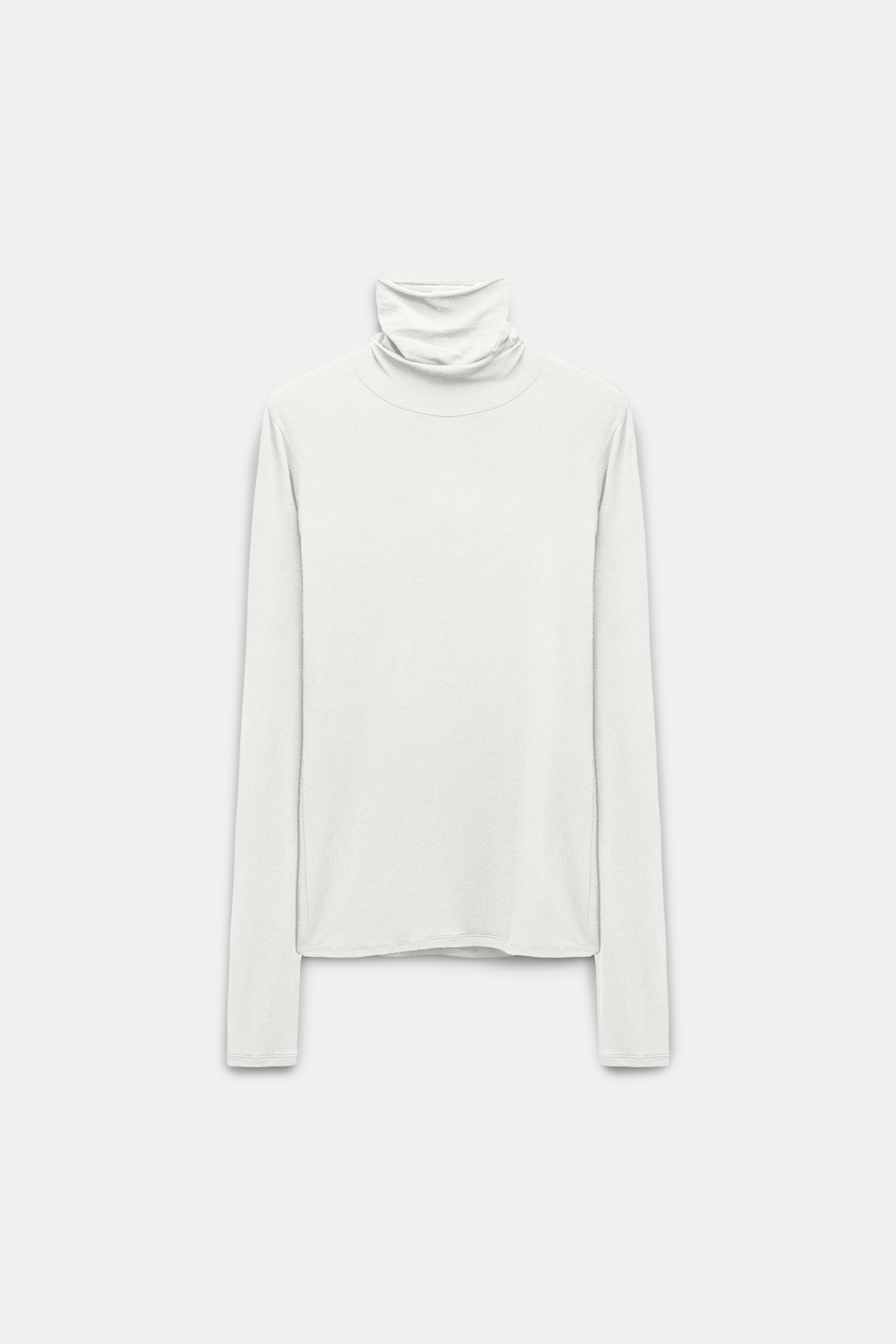Der Rollkragen mit geschnittener Kante sorgt für einen lässigen Touch.