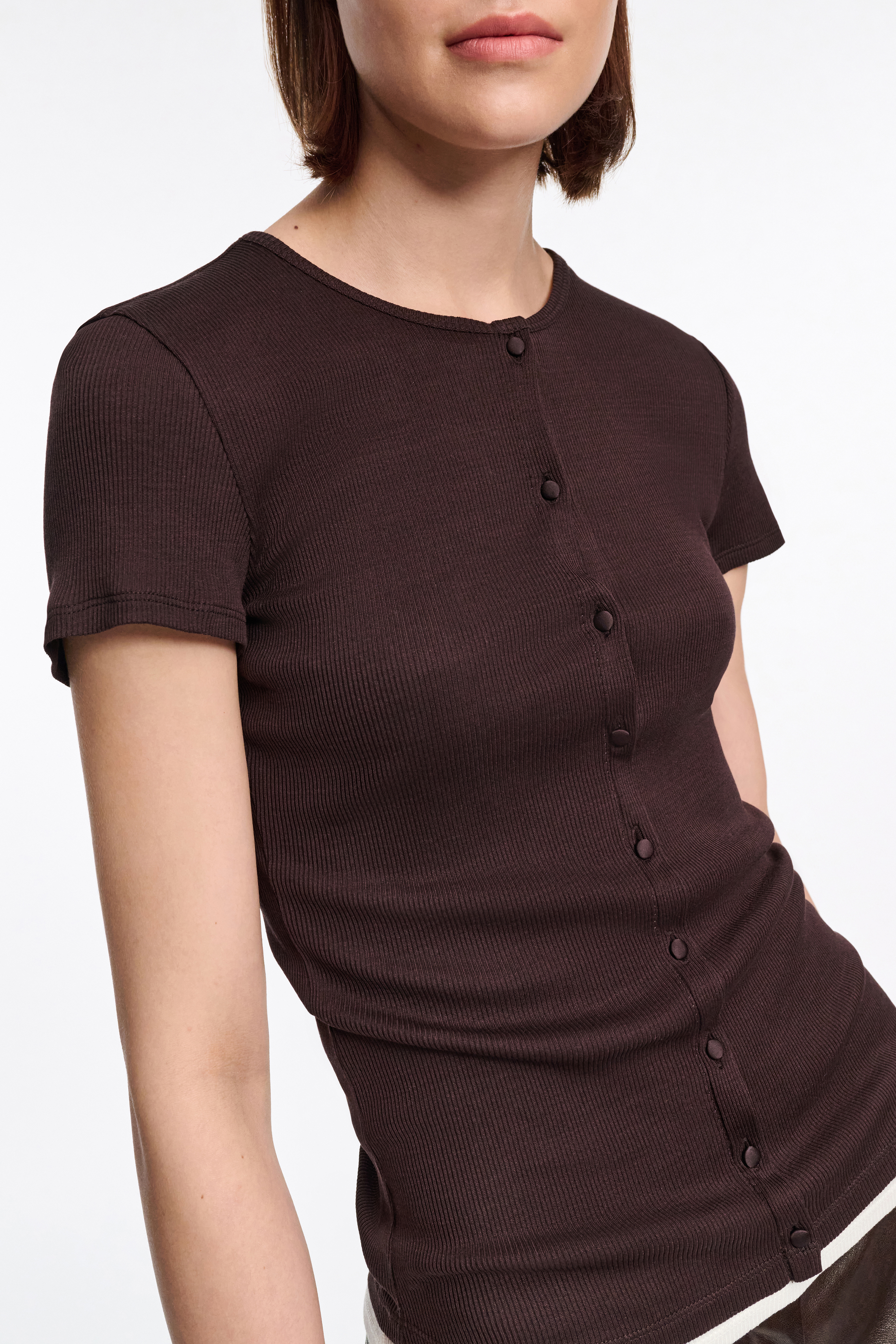Das figurnahe Rippenshirt überzeugt mit einer luxuriösen Qualität.