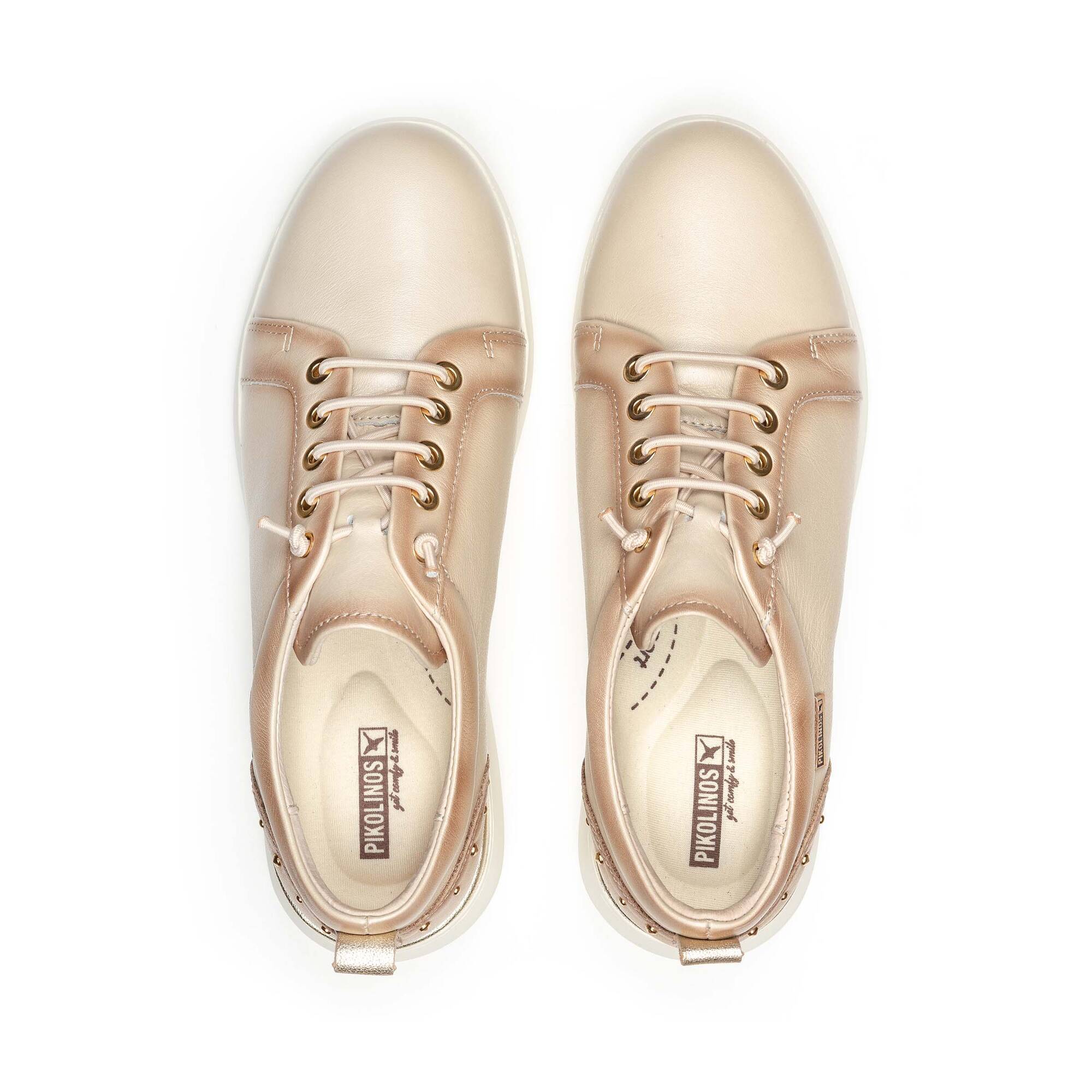 Turnschuhe mit elastischen Schnürsenkeln und Nieten an der Ferse.