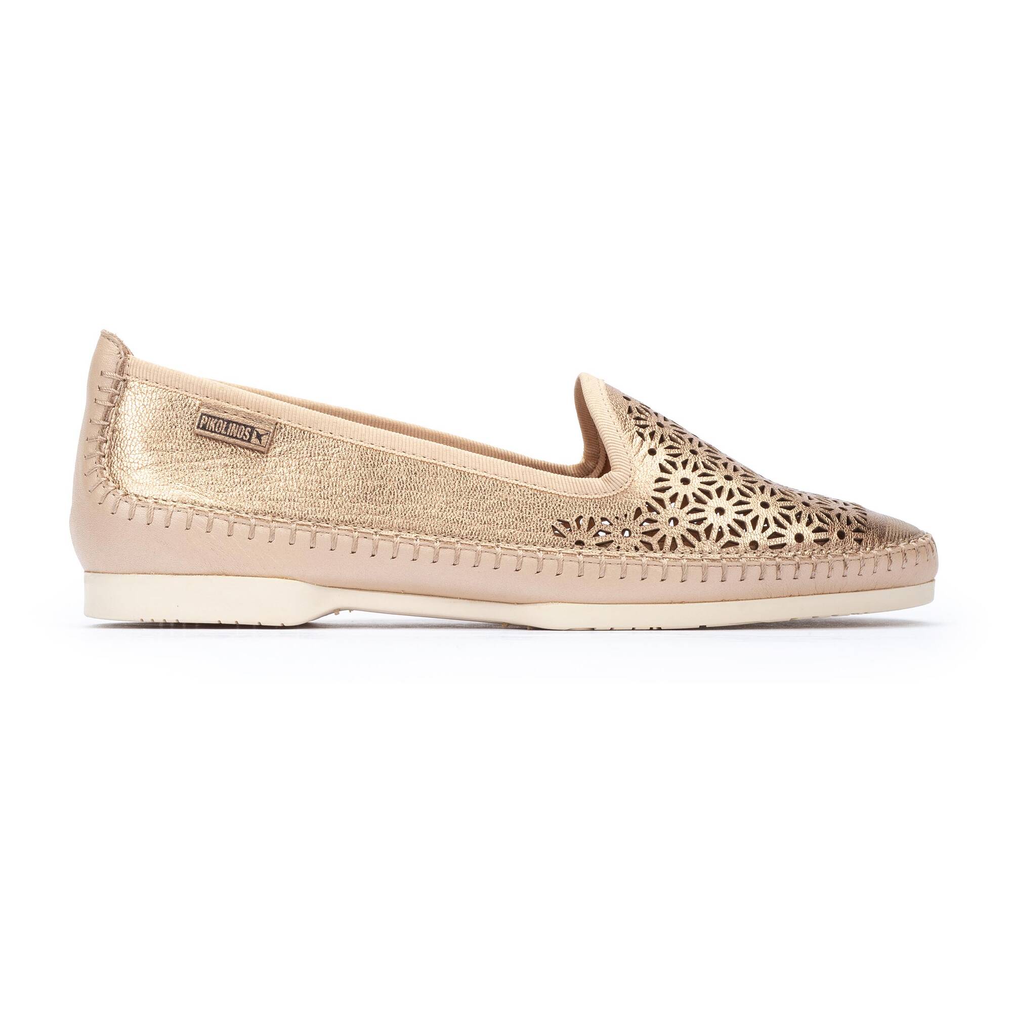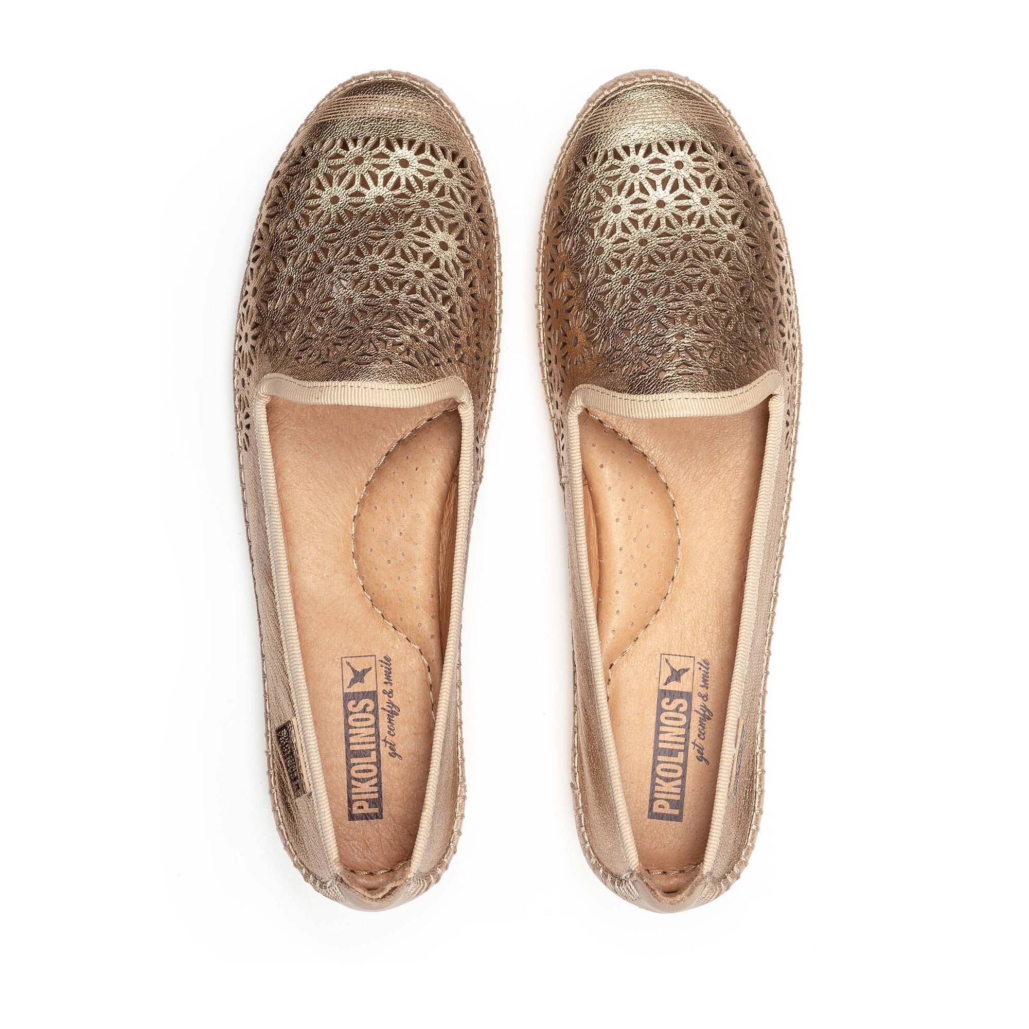 Perforierter Metallic-Damen-Slipper Ein Modell mit weicher Sohle, ohne Schnürsenkel, funktionell, originell und sehr bequem.