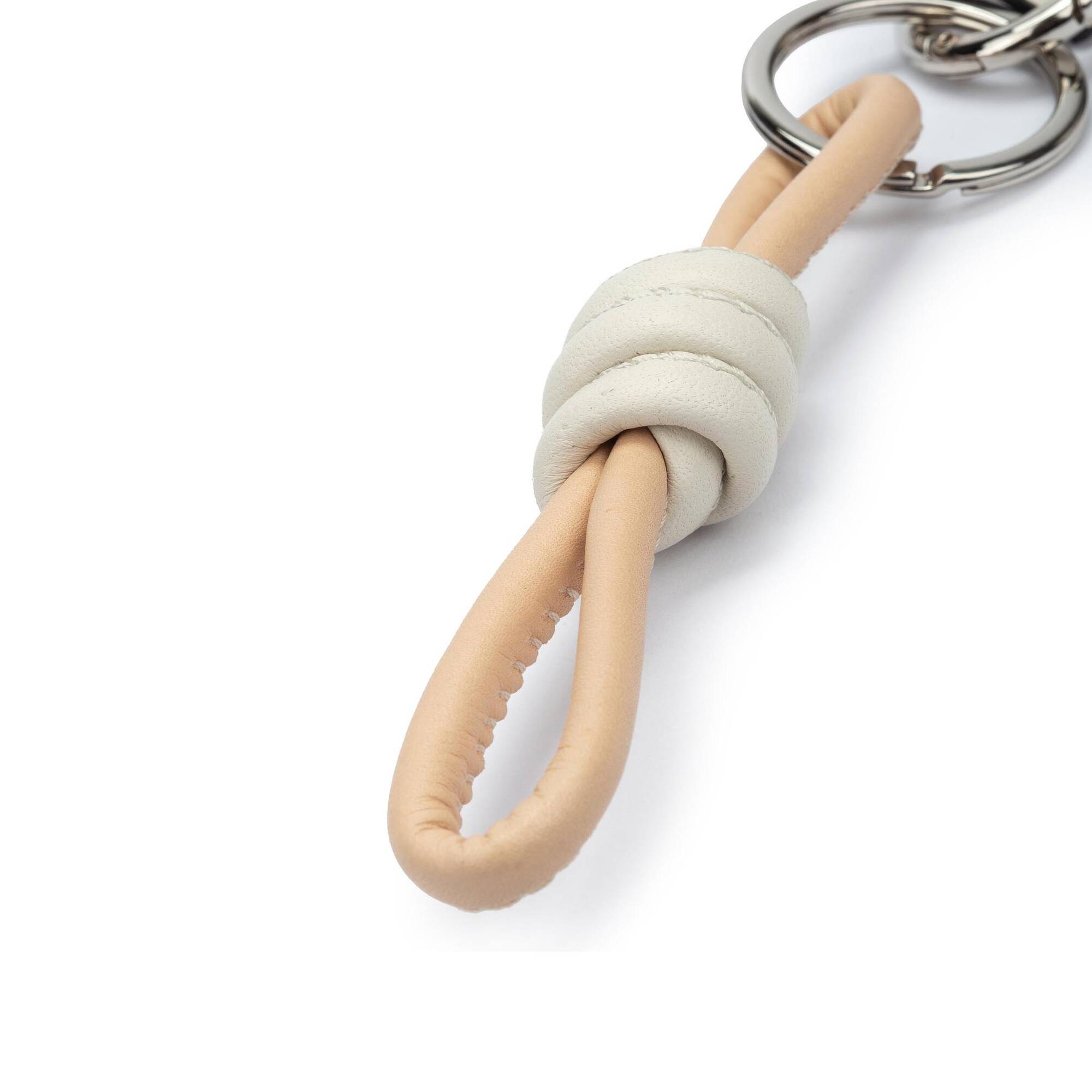 Llavero dos piezas con detalle de nudo y detalle de logotipo.