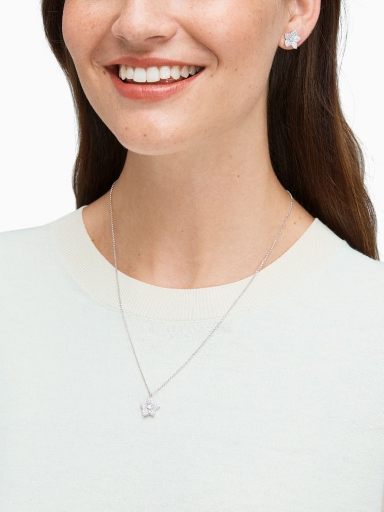 Zirkonia Scheibenverschluss Karabinerhaken Gesamtlänge Der Kette 43,2 Cm 7,6 Cm Länge Des Anhängers 1,2 Cm Gesamtlänge/innenumfang 1,2 Cm Breite 1,2 Cm Importiert Style No O0R00087 Kate Spade Blooming Ohrstecker Mit Pavé Und Anhänger, Extraklein Für Frauen In Transparent/silber Kubikzirkonie
