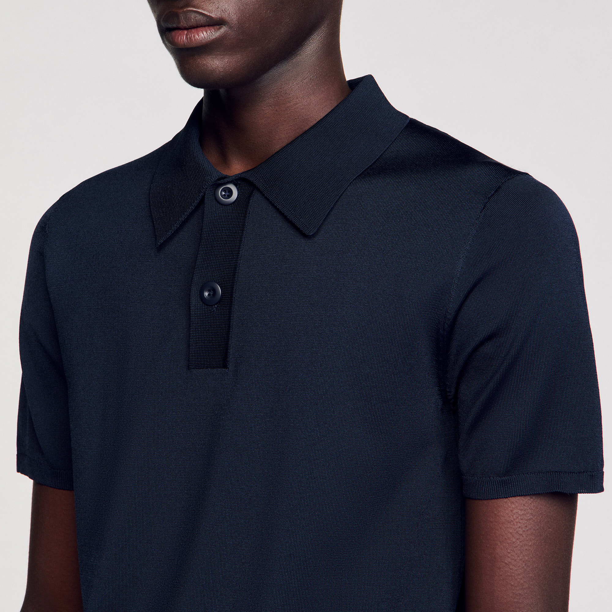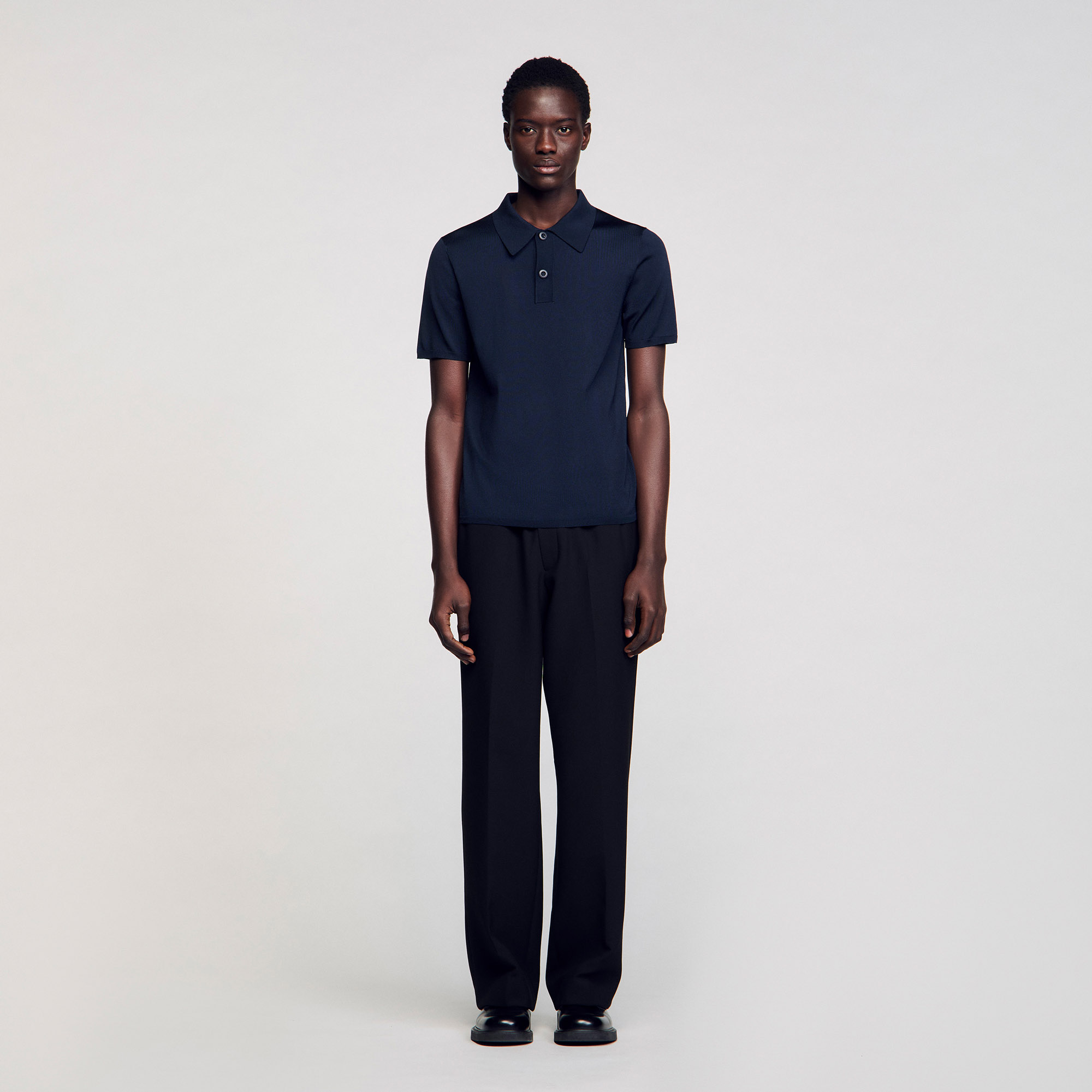 Sandro Men's knitted polo shirt Polo collar Two buttons on the front Short sleeves Straight cut True to size The viscose in this item is made of cellulose from sustainably managed forests..