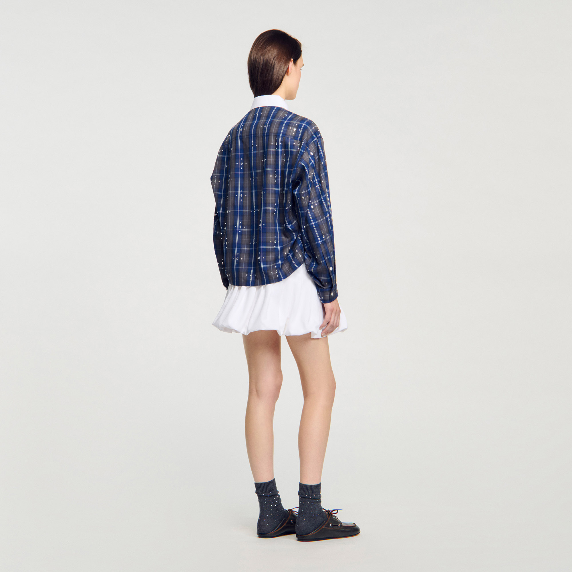 Sandro Women's checkered shirt All-over rhinestones Contrasting shirt collar Long sleeves Buttoned cuffs Button fastening Designed for a boxy fit.