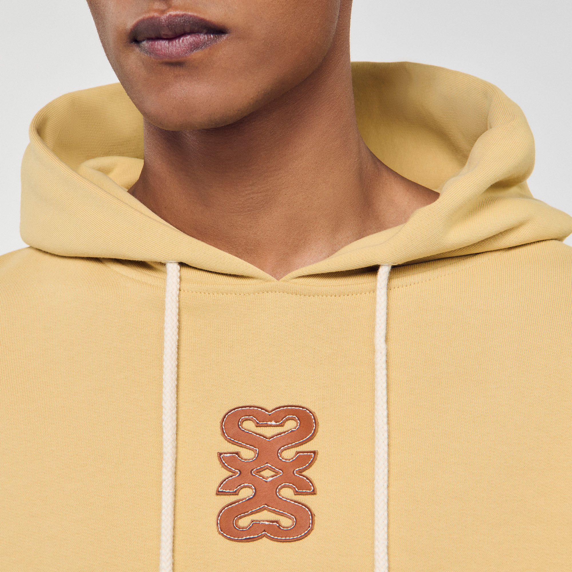 Sandro cotton Oversized sweatshirt in non-brushed fleece, with a hood with braided drawstrings, long sleeves, a front pocket and a leather 4S patch on the front.