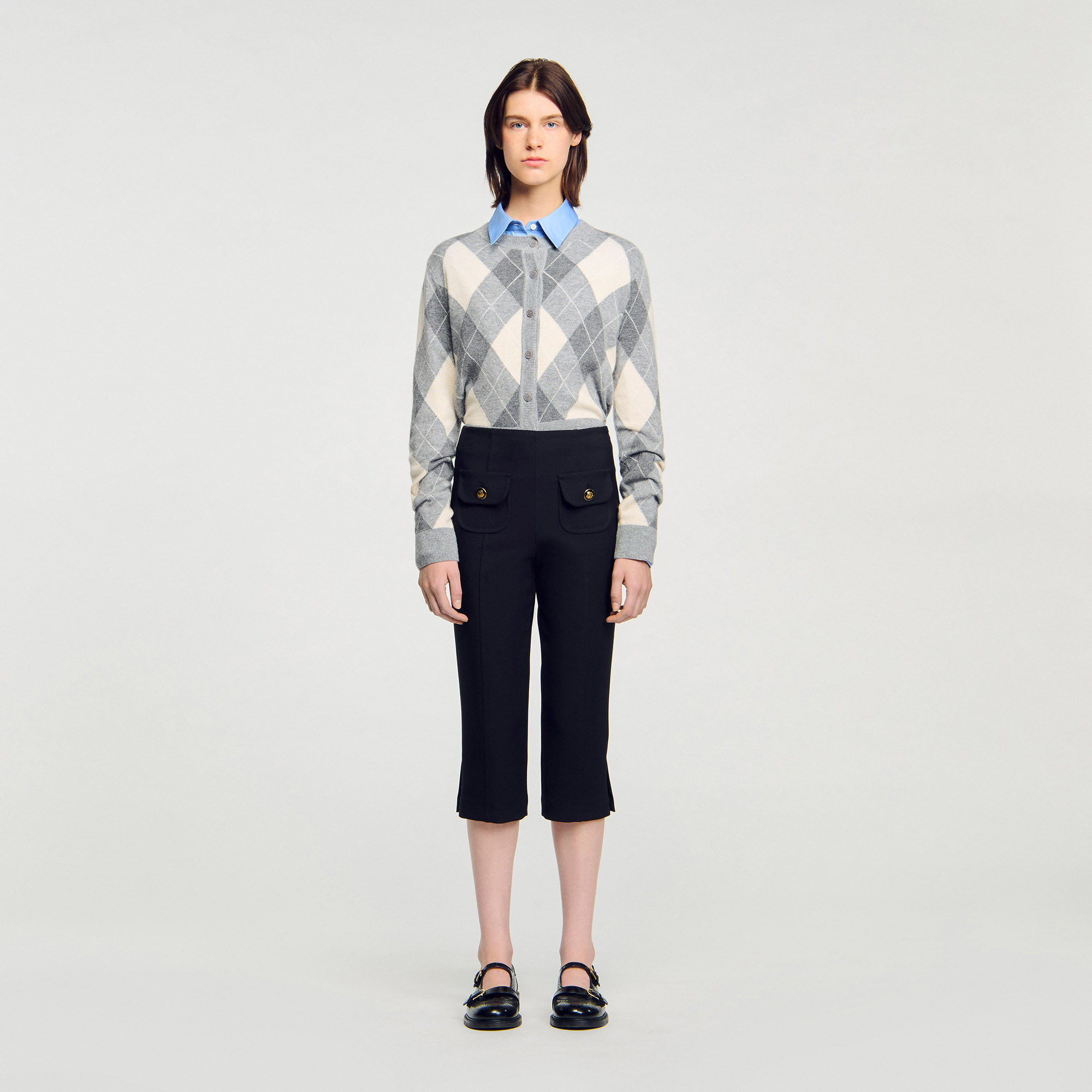 Sandro Women's capri trousers Side slit at hem Buttoned flap patch pockets Side zip fastening Designed for a slim fit.