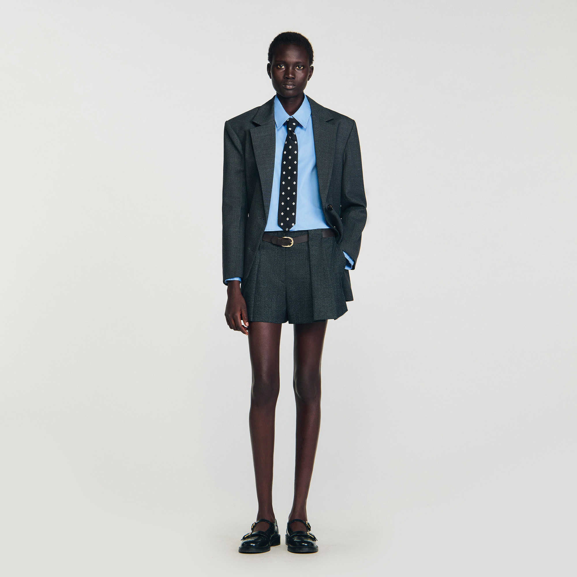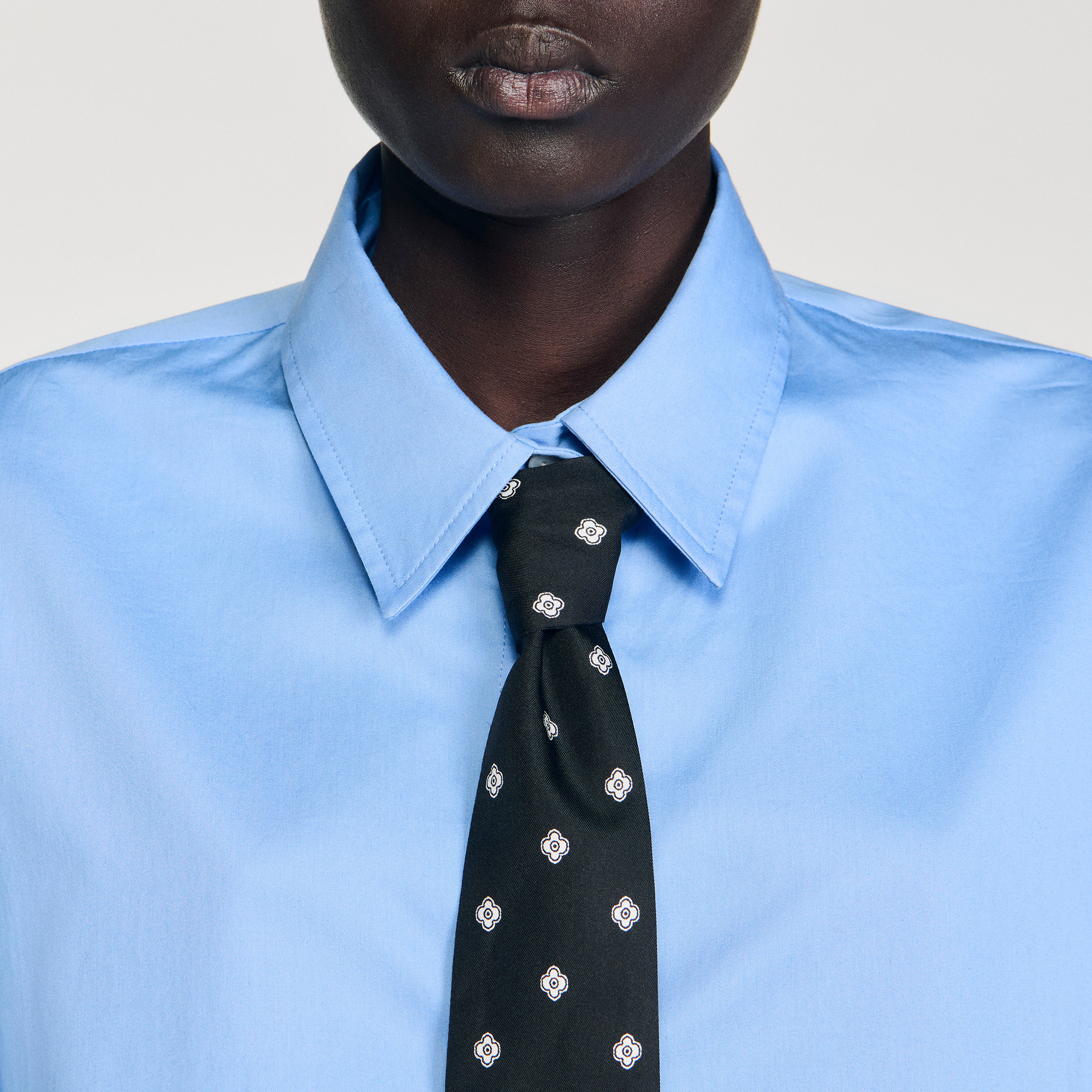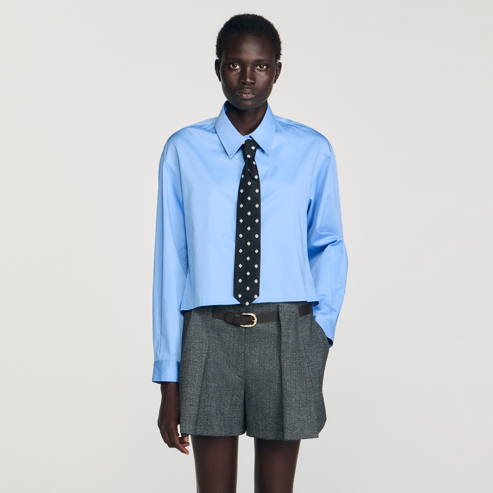 Sandro Women's oversized cropped shirt with removable tie Shirt collar Long sleeves with buttoned cuffs Button fastening Asymmetric hem Designed for an oversized fit.