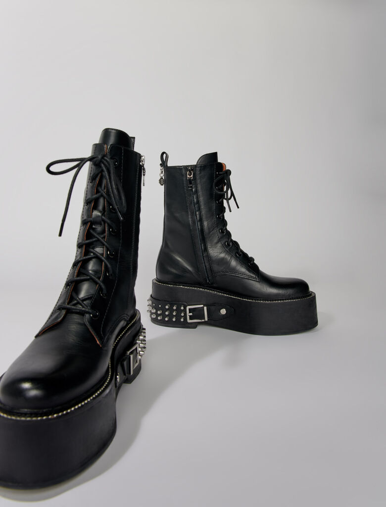 Combat boots in smooth leather 7 cm platform sole Leather panel with studs Clover piercing.