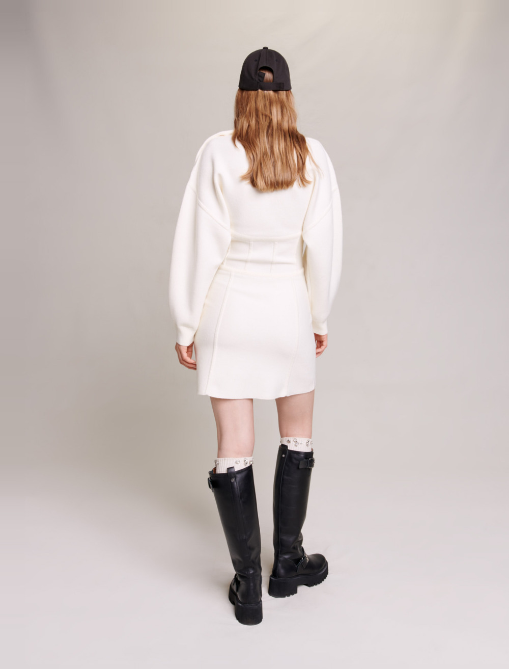 Maje Woman's polyester Corset-effect jumper dress for Fall/Winter, in color Ecru / Beige