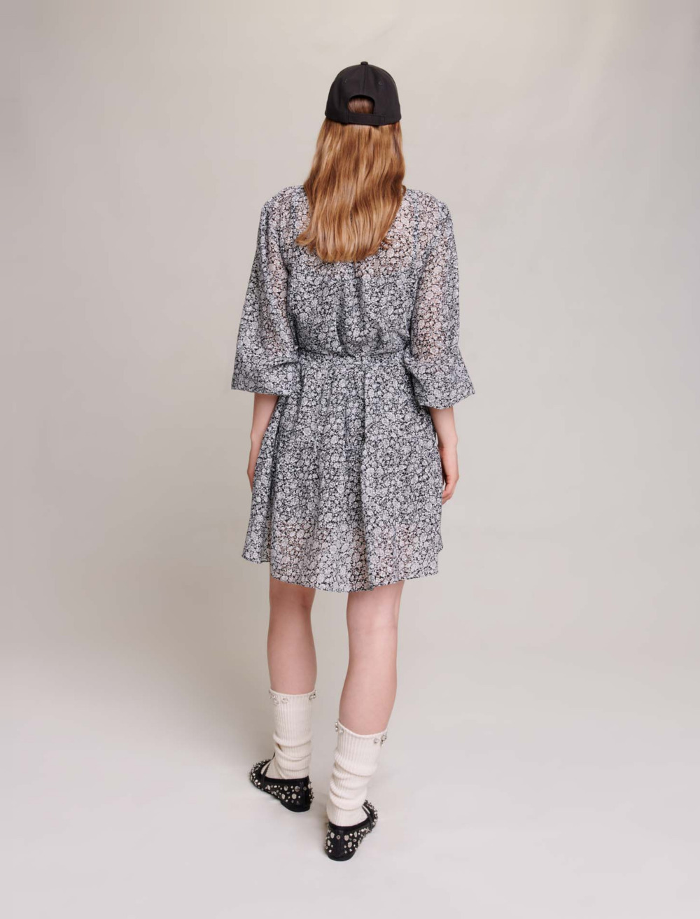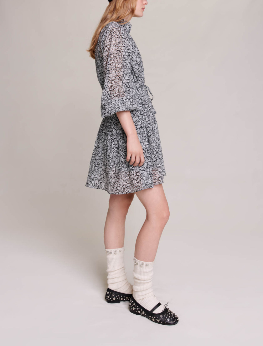 Embellished with a dévoré floral pattern, this short dress plays on volume and is a real head-turner with its lightweight, romantic spirit.