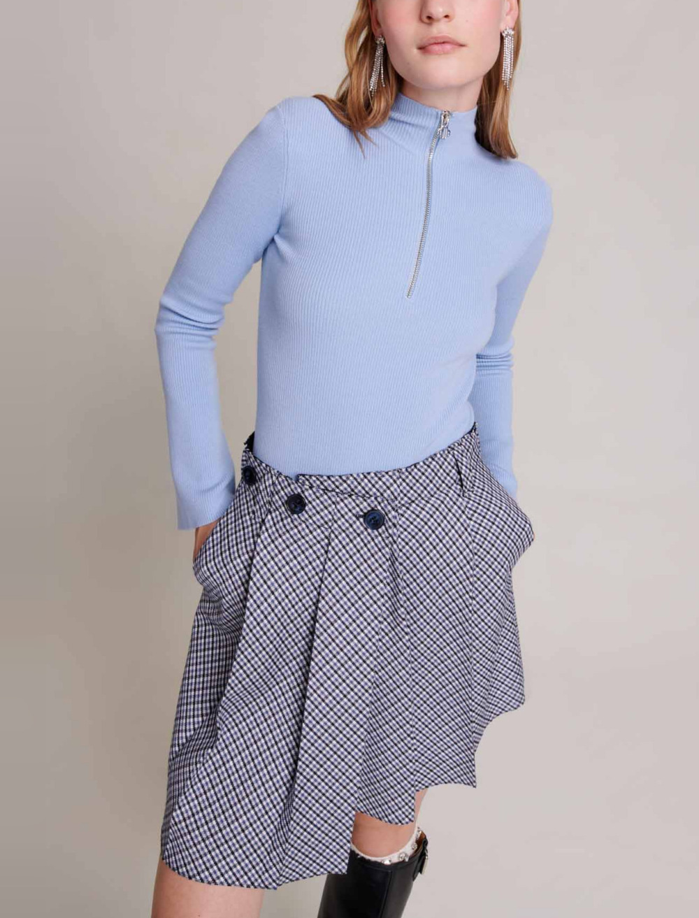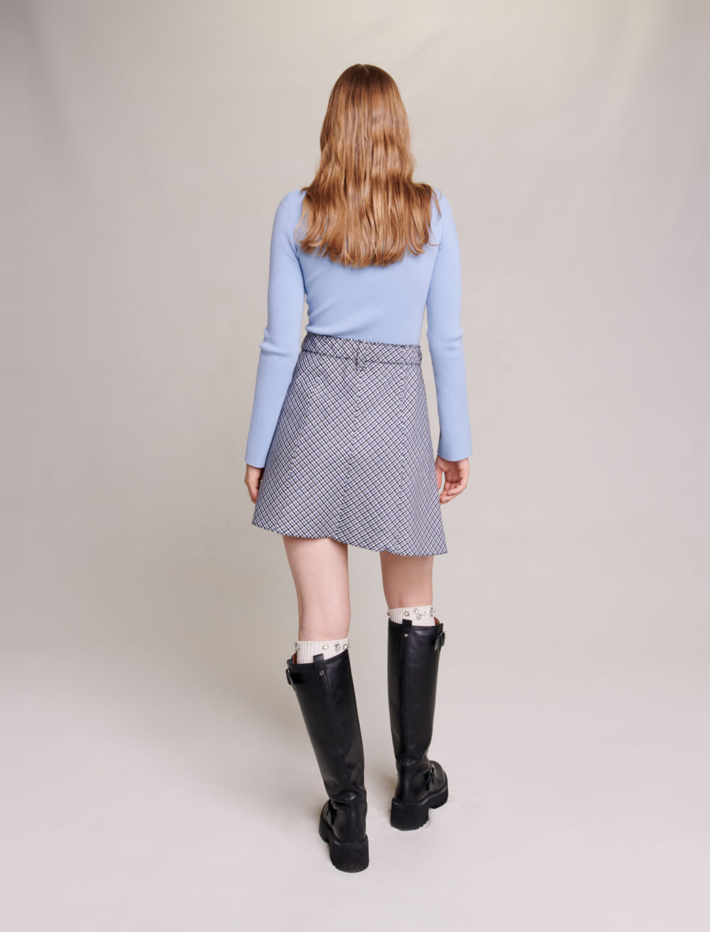Embellished with a houndstooth pattern, this kilt-inspired skirt plays on lines and volumes to structure the silhouette.