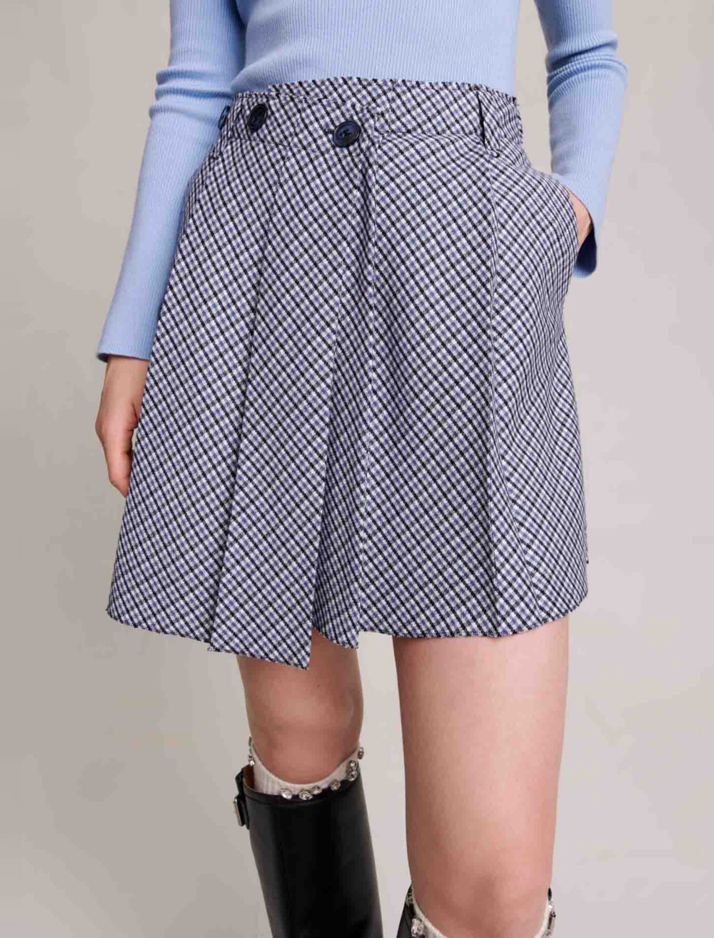 Short kilt-style skirt Pleated and asymmetrical Houndstooth print.