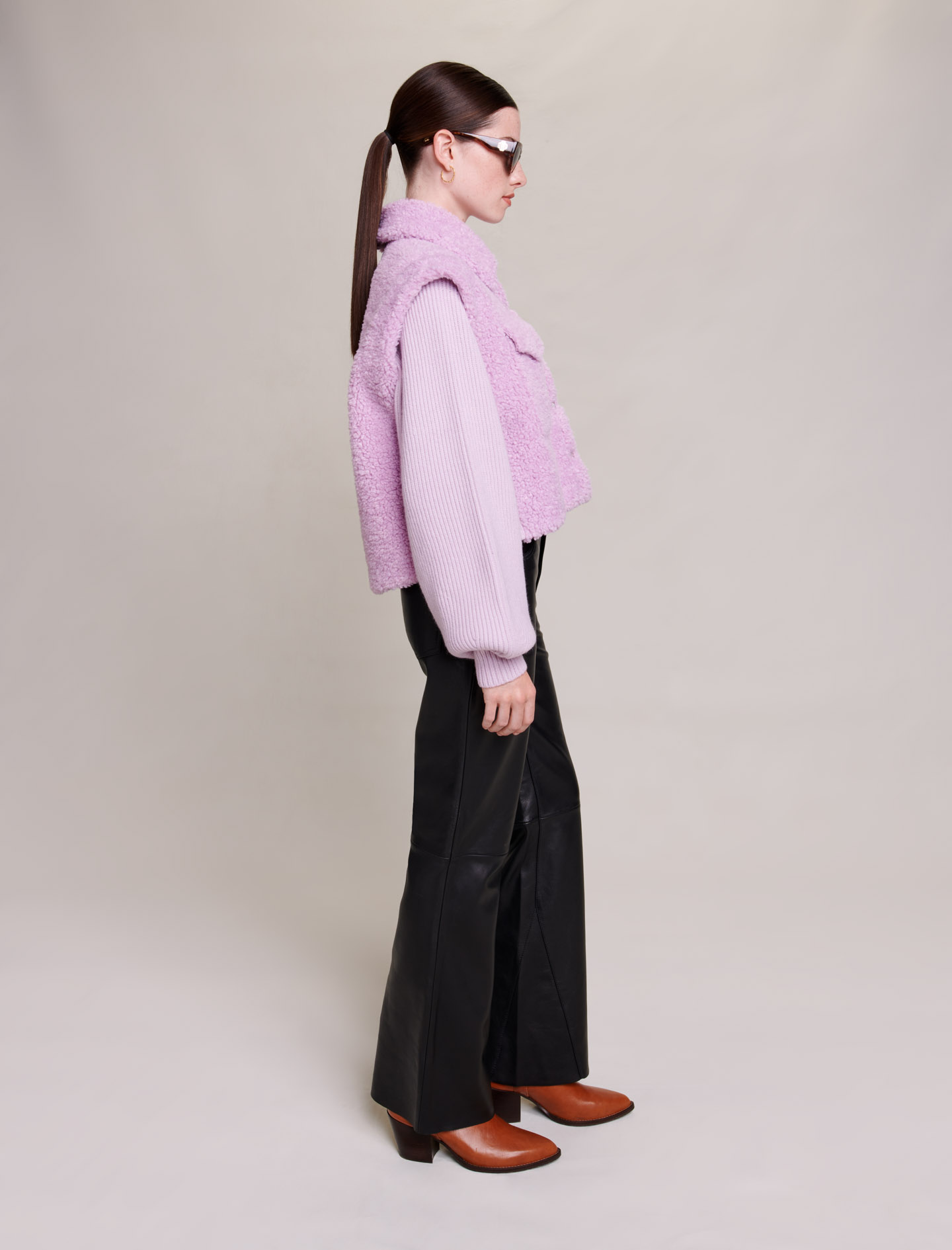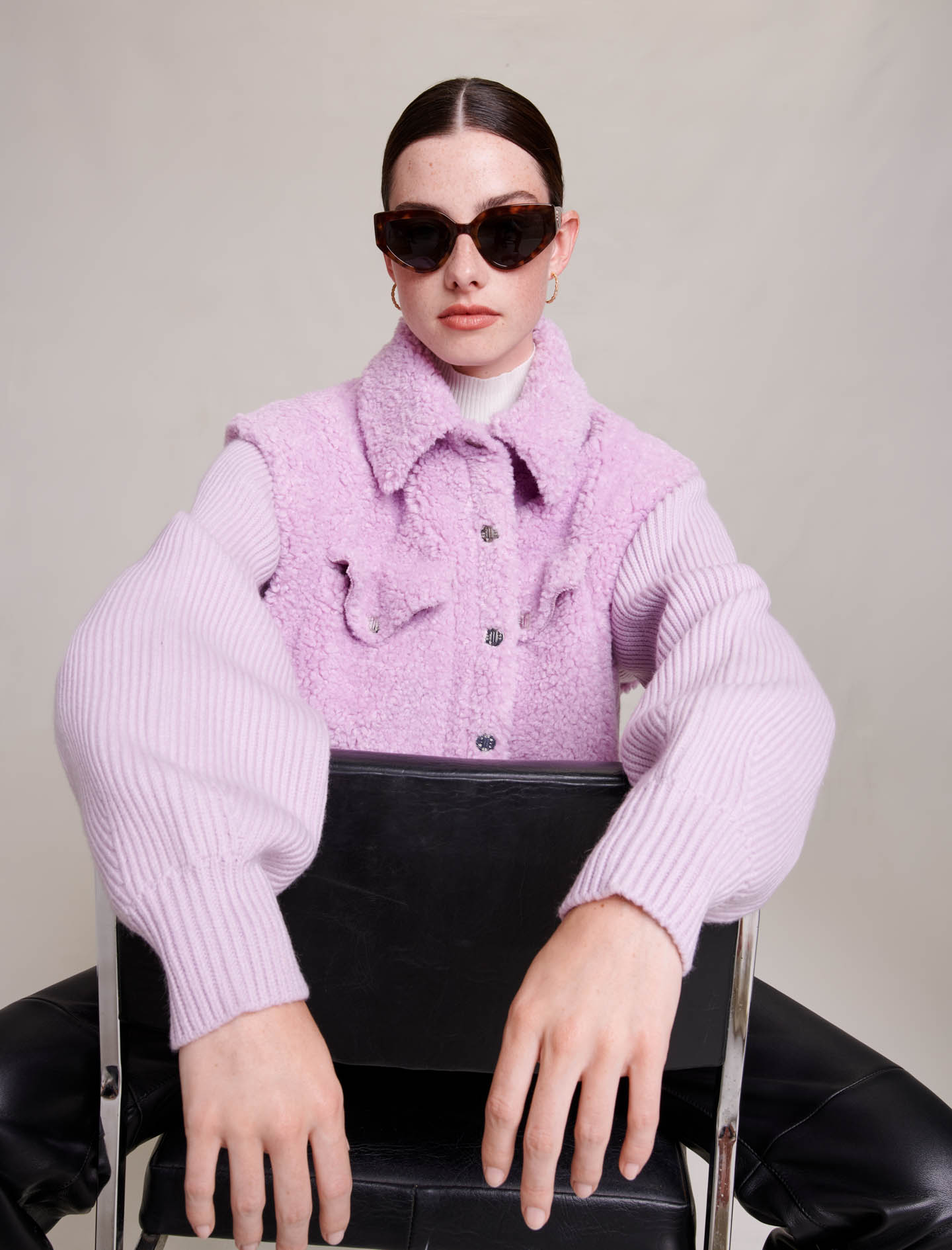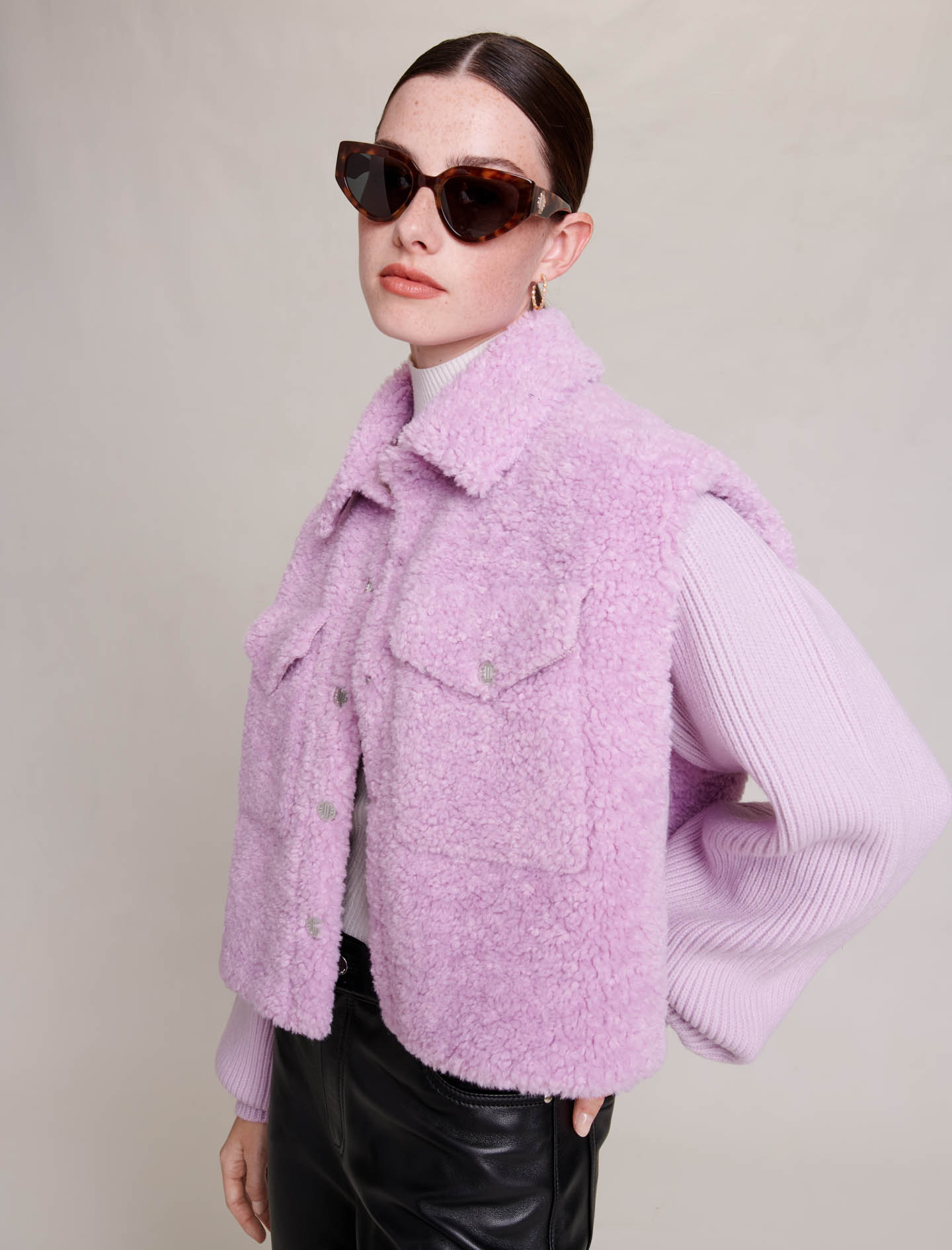 Our common goal is to reduce the environmental impact of our clothes a little more every season., Read about all the steps we are taking Faux fur and ribbed knit jacket Imitation suede interior Metal logoed buttons.