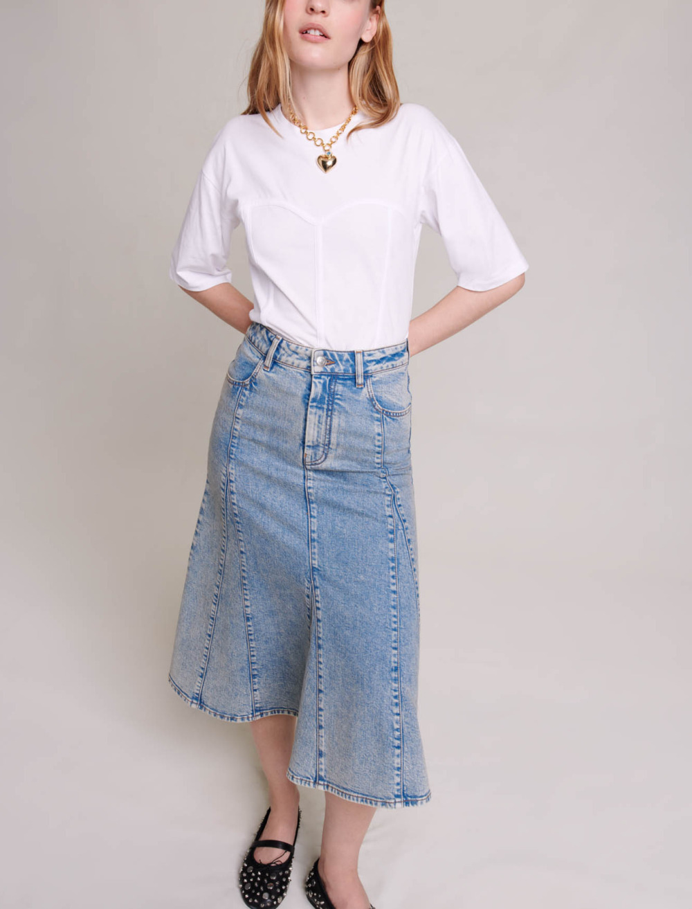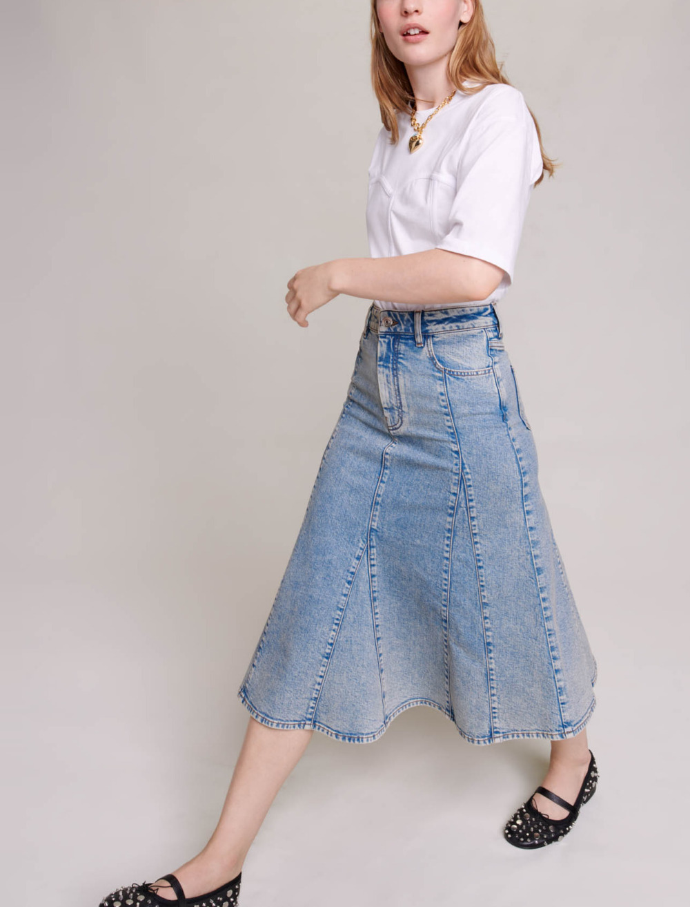Maje Woman's cotton Denim midi skirt for Spring/Summer, in color Blue / Blue