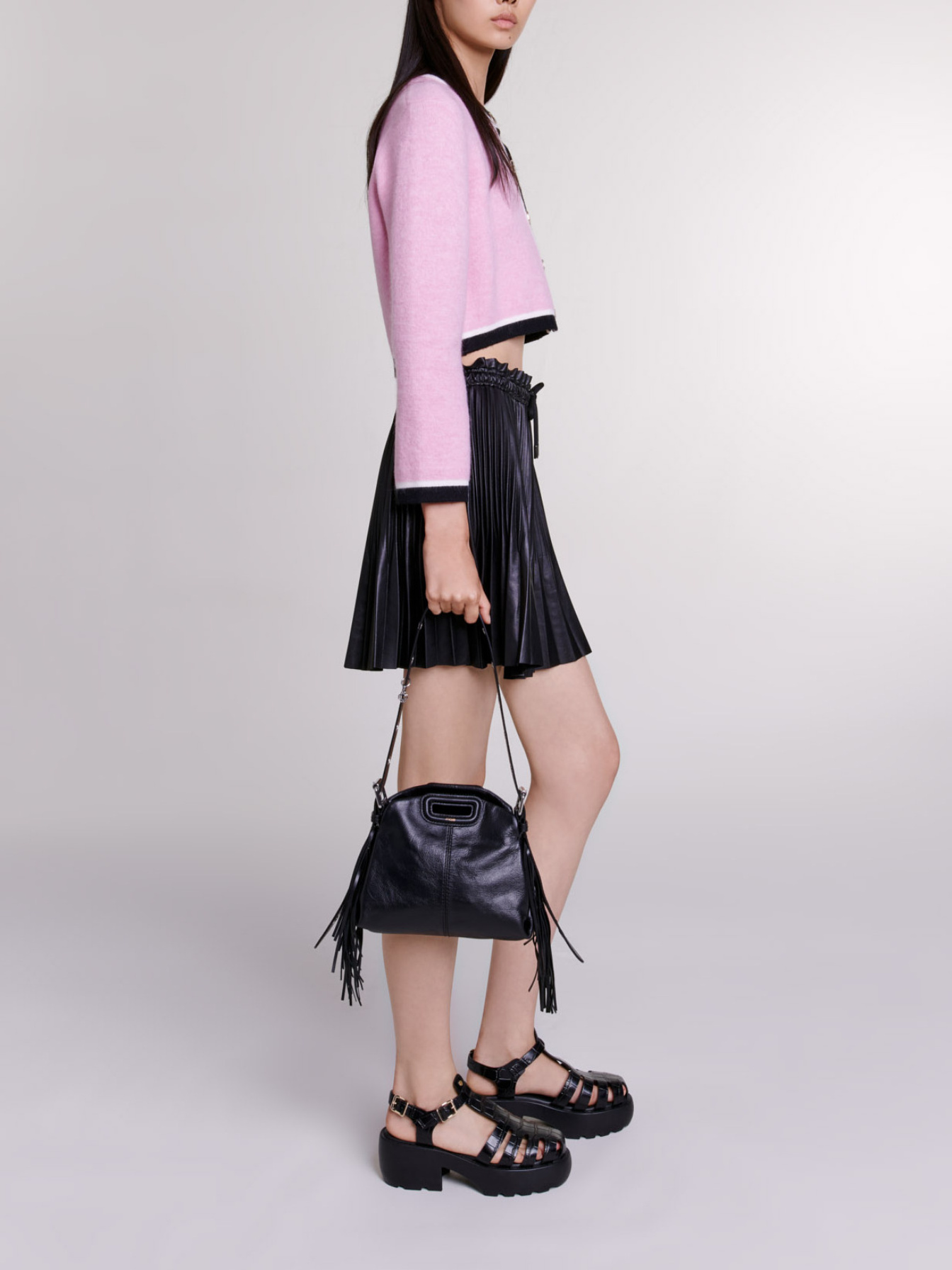 Short leather-effect skirt Pleated Elasticated drawstring waist..