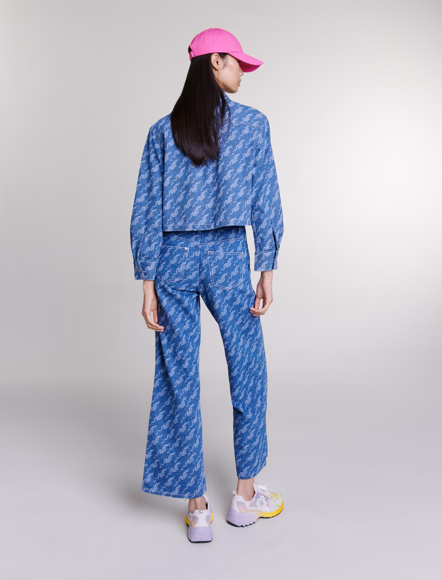 Maje Woman's cotton Patterned denim shirt for Spring/Summer, in color Blue / Blue