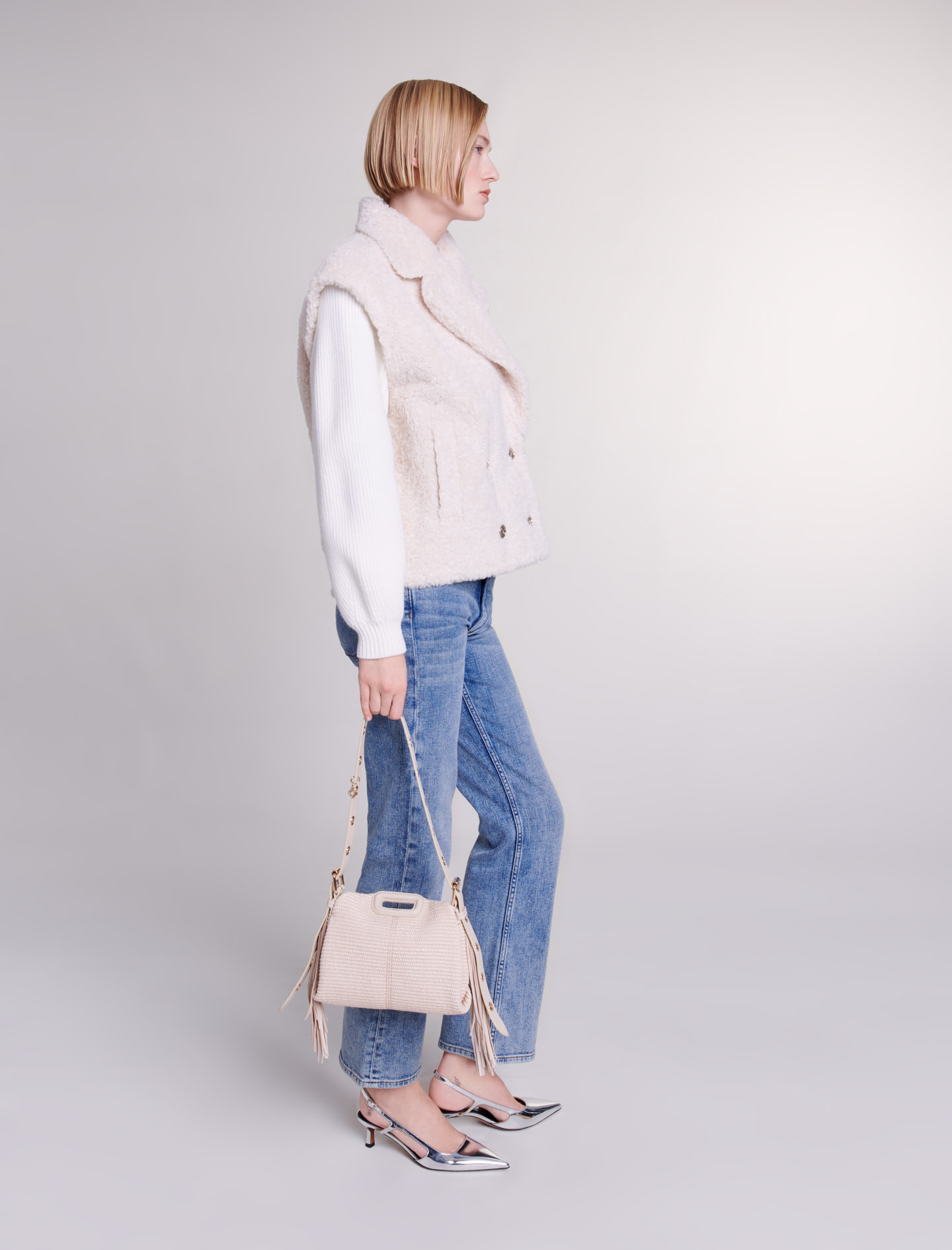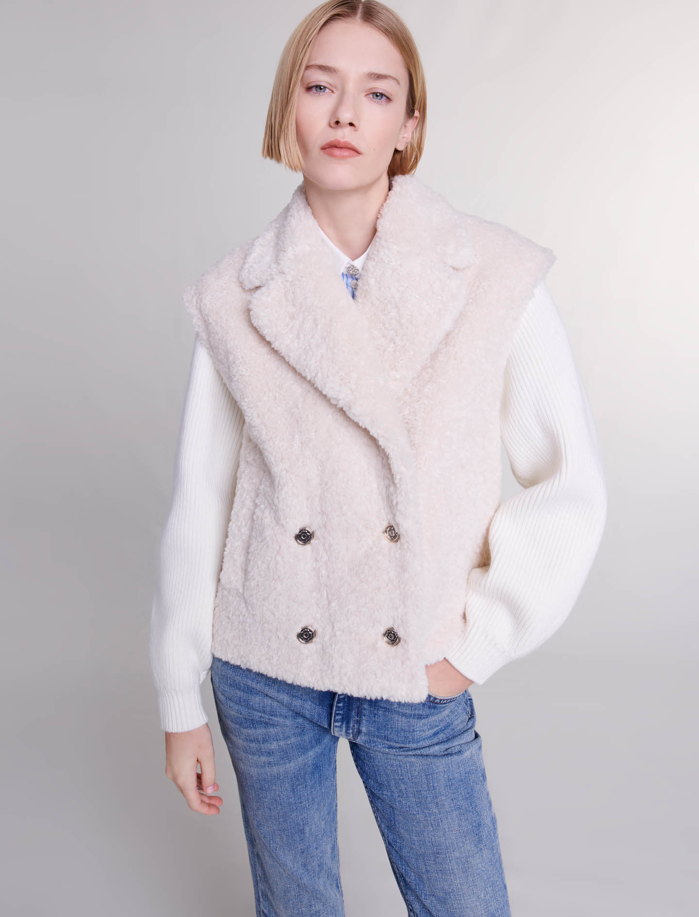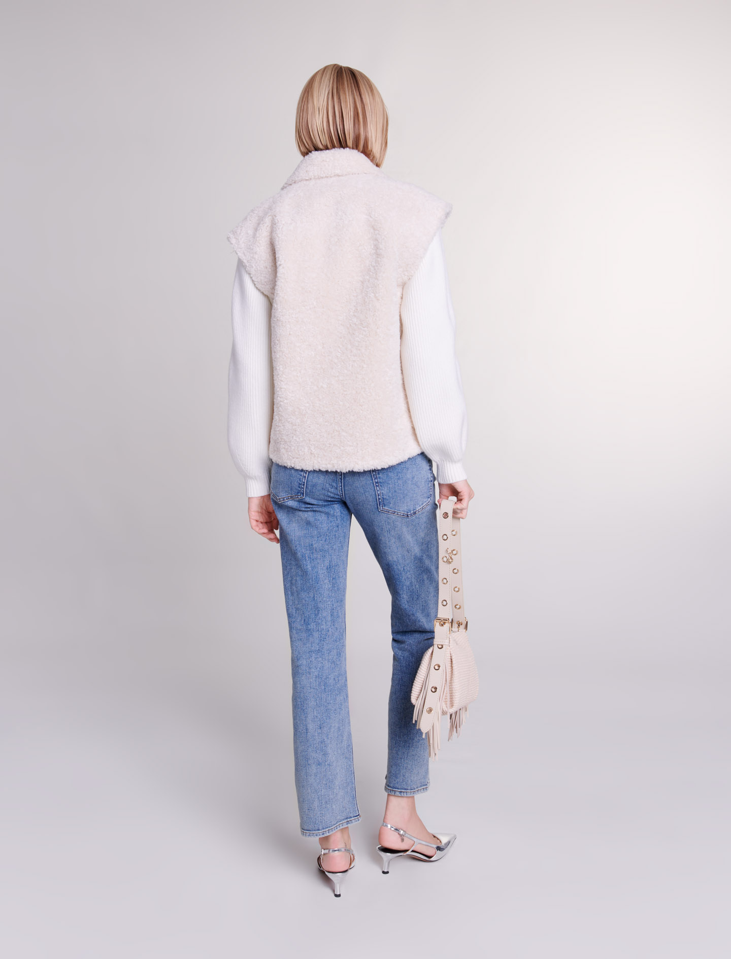 Mix and match knit and faux fur shearling effect jacket Rib knit sleeves 2 pockets.