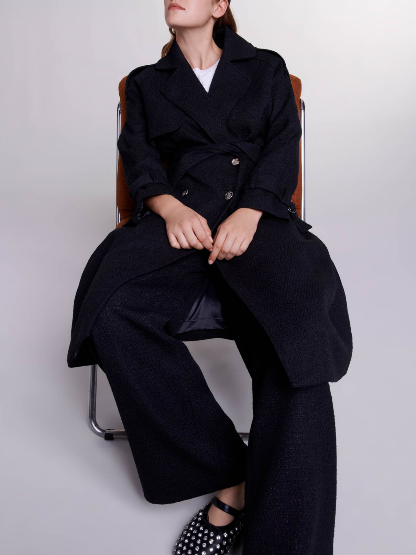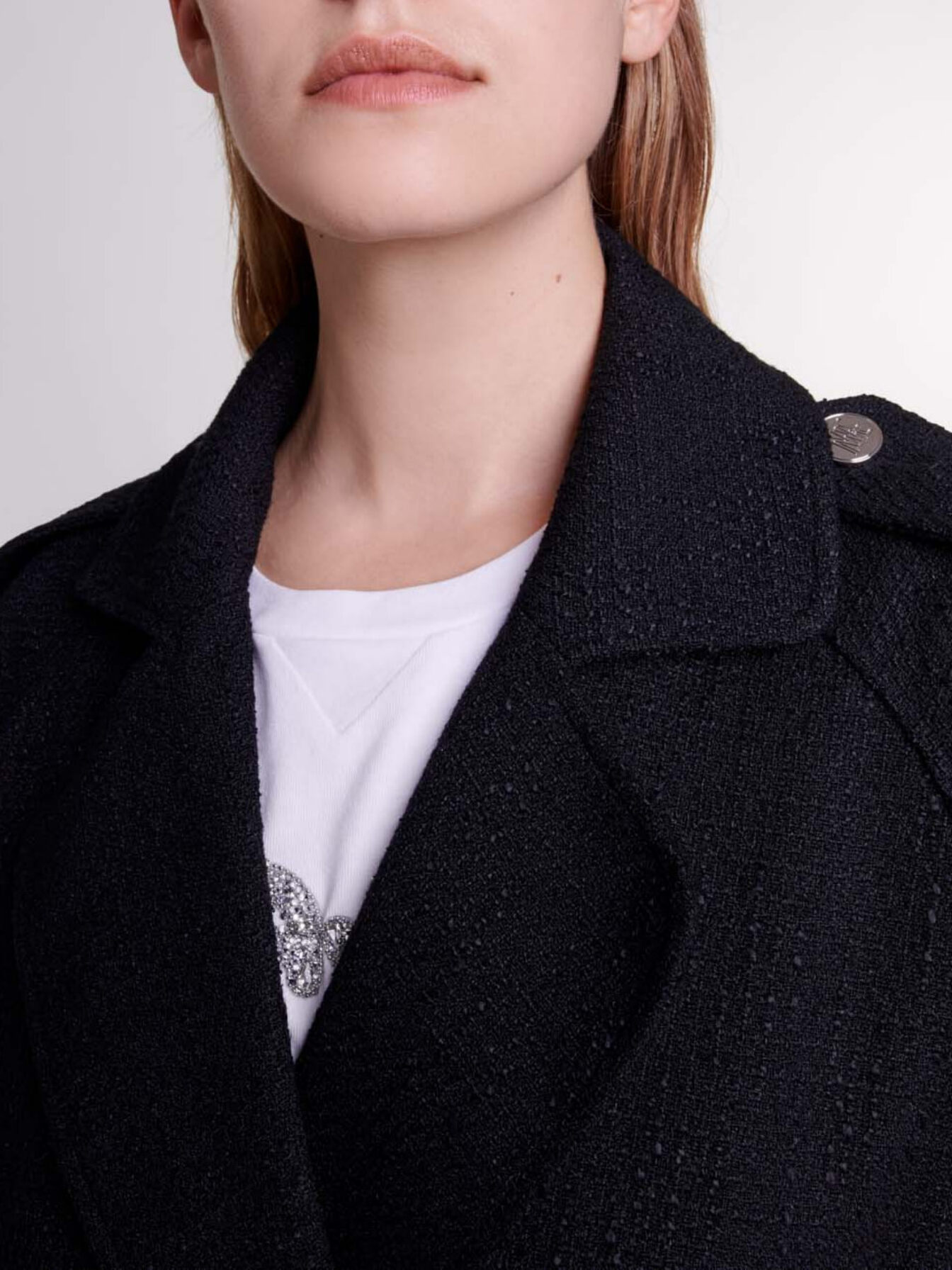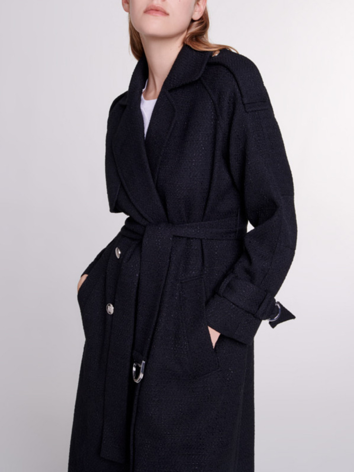 Maje Woman's polyester Tweed trench coat for Spring/Summer, in color Black / Black