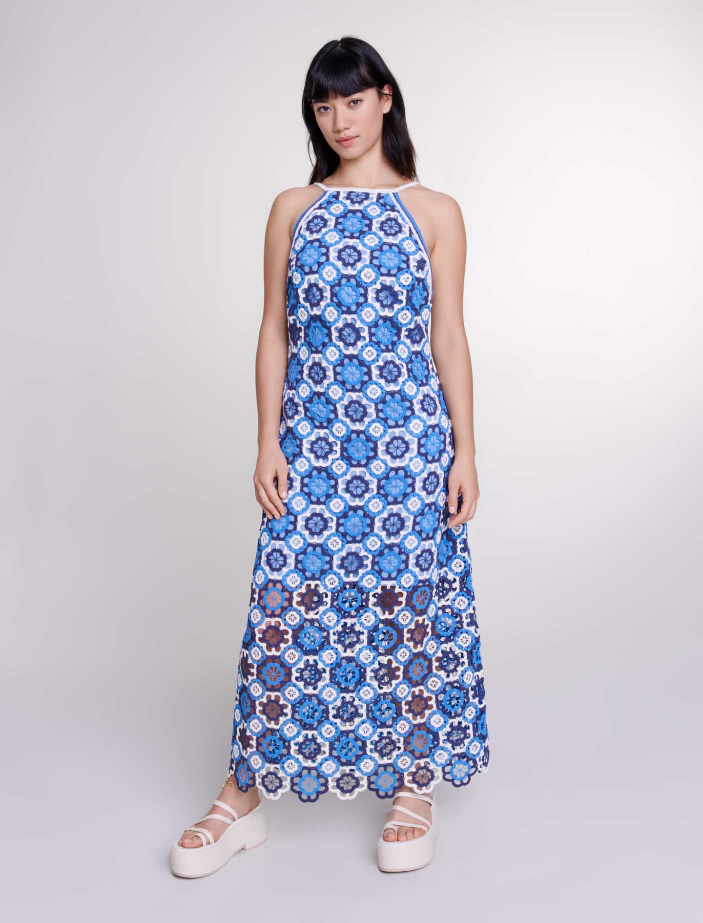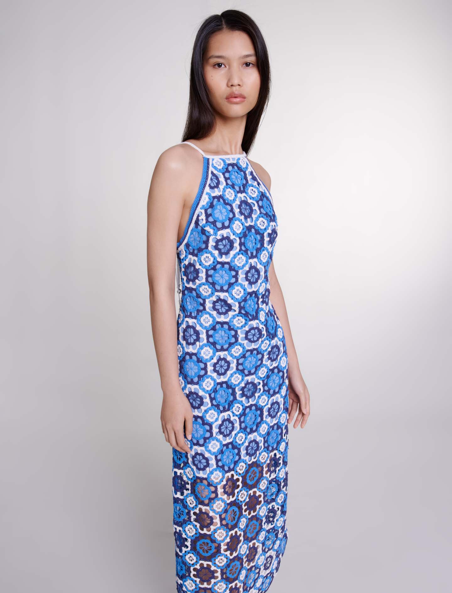 Maje Woman's cotton Three-tone crochet dress for Spring/Summer, in color Blue / Blue