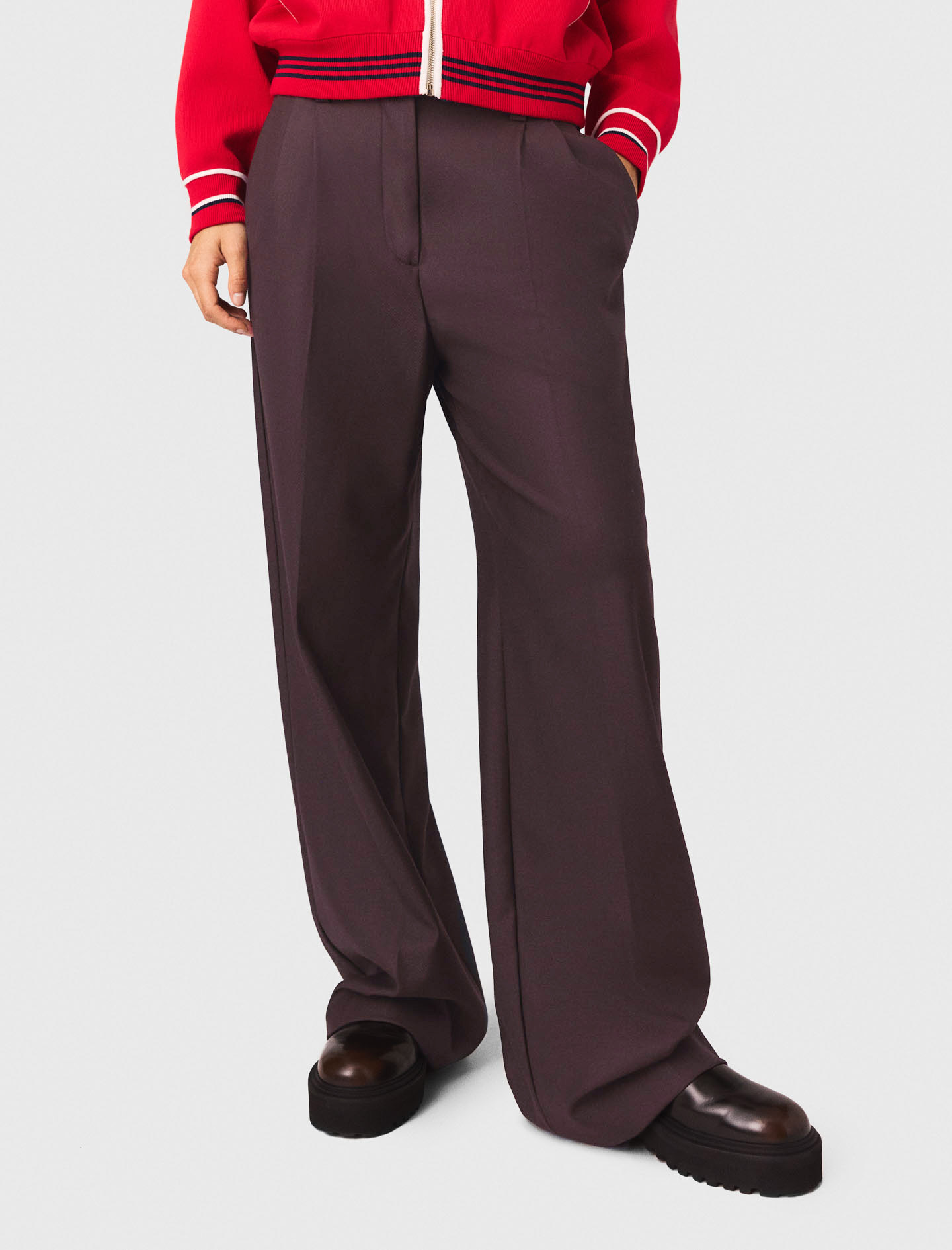 Maje Woman's polyester Wide-leg suit trousers for Fall/Winter, in color Brown / Brown