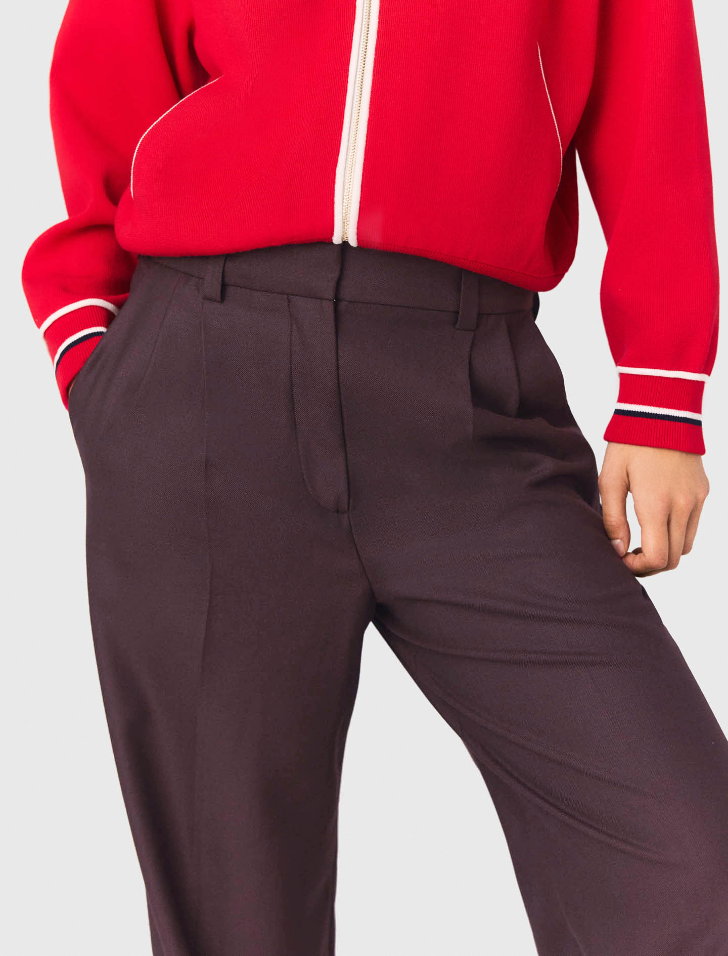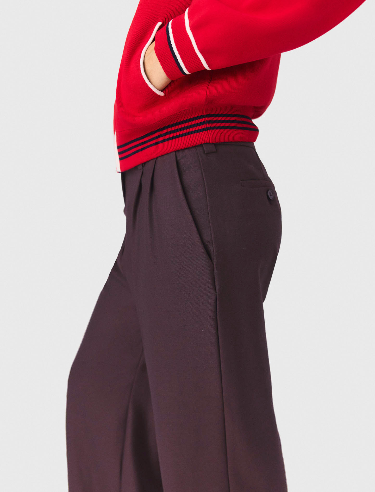 These trousers with darts and ironed creases offer a multitude of possibilities.