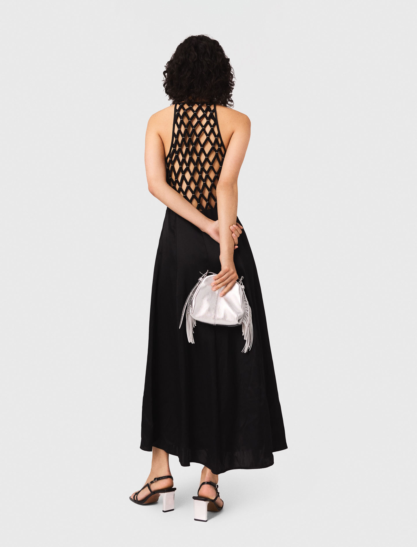 Maje Woman's viscose Floaty maxi dress with braided back for Fall/Winter, in color Black / Black