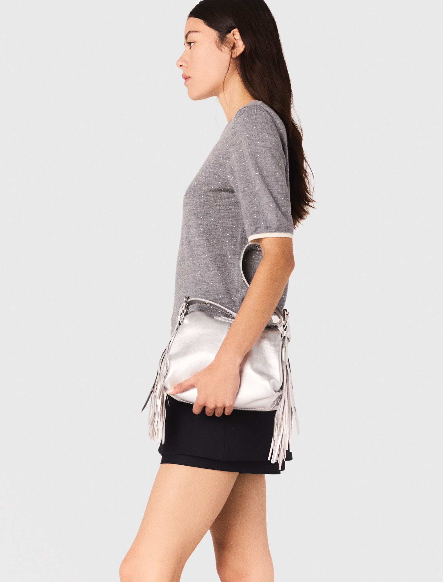 This wool jumper brightens the silhouette with its delicate rhinestones and 2-in-