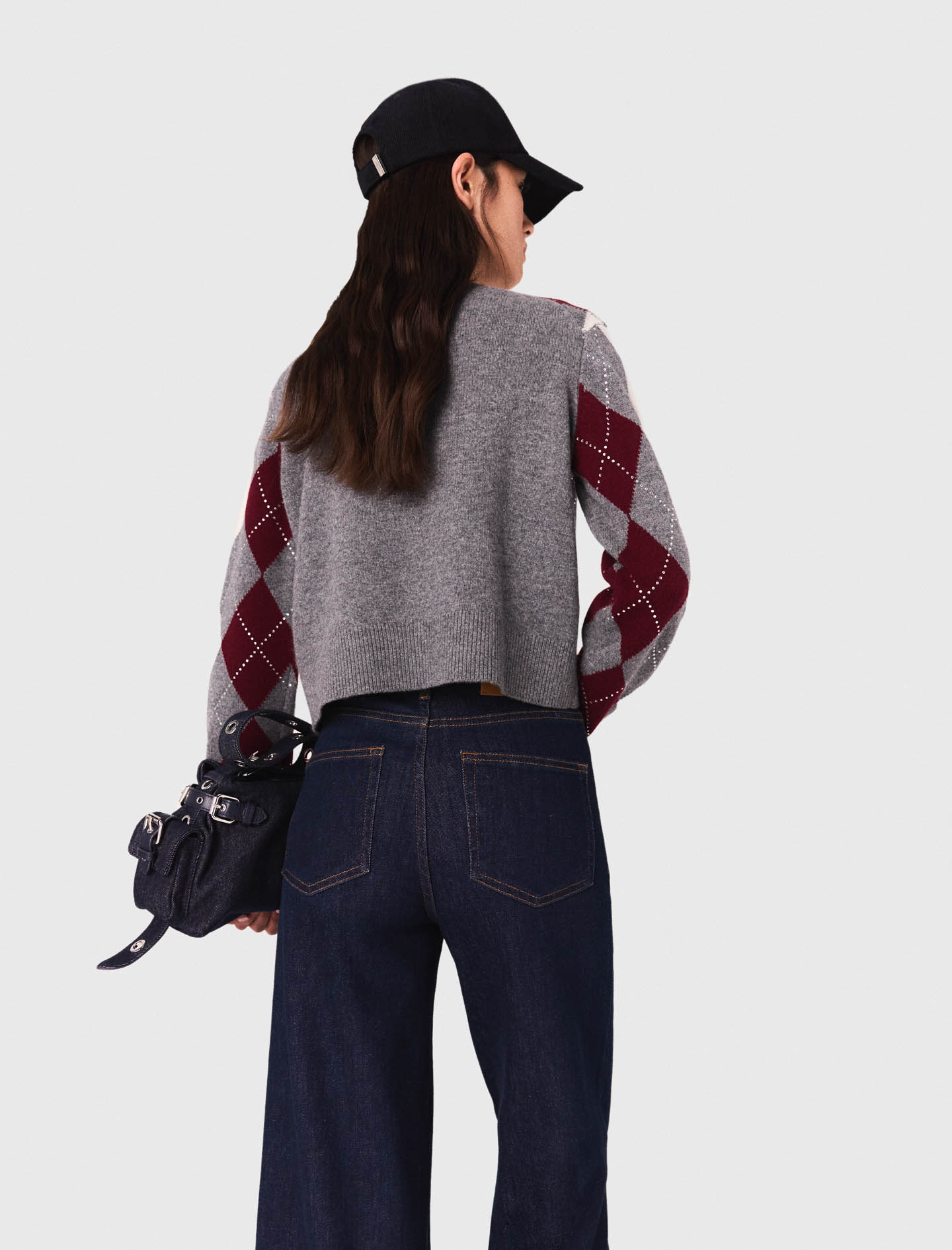 Maje wool Soft knit sweater Diamond pattern with rhinestones Round neck and long sleeves Ribbed trim Designed for a boxy fit Maje is reinventing the preppy look with must-have pieces to make your own and accessorise all season long.