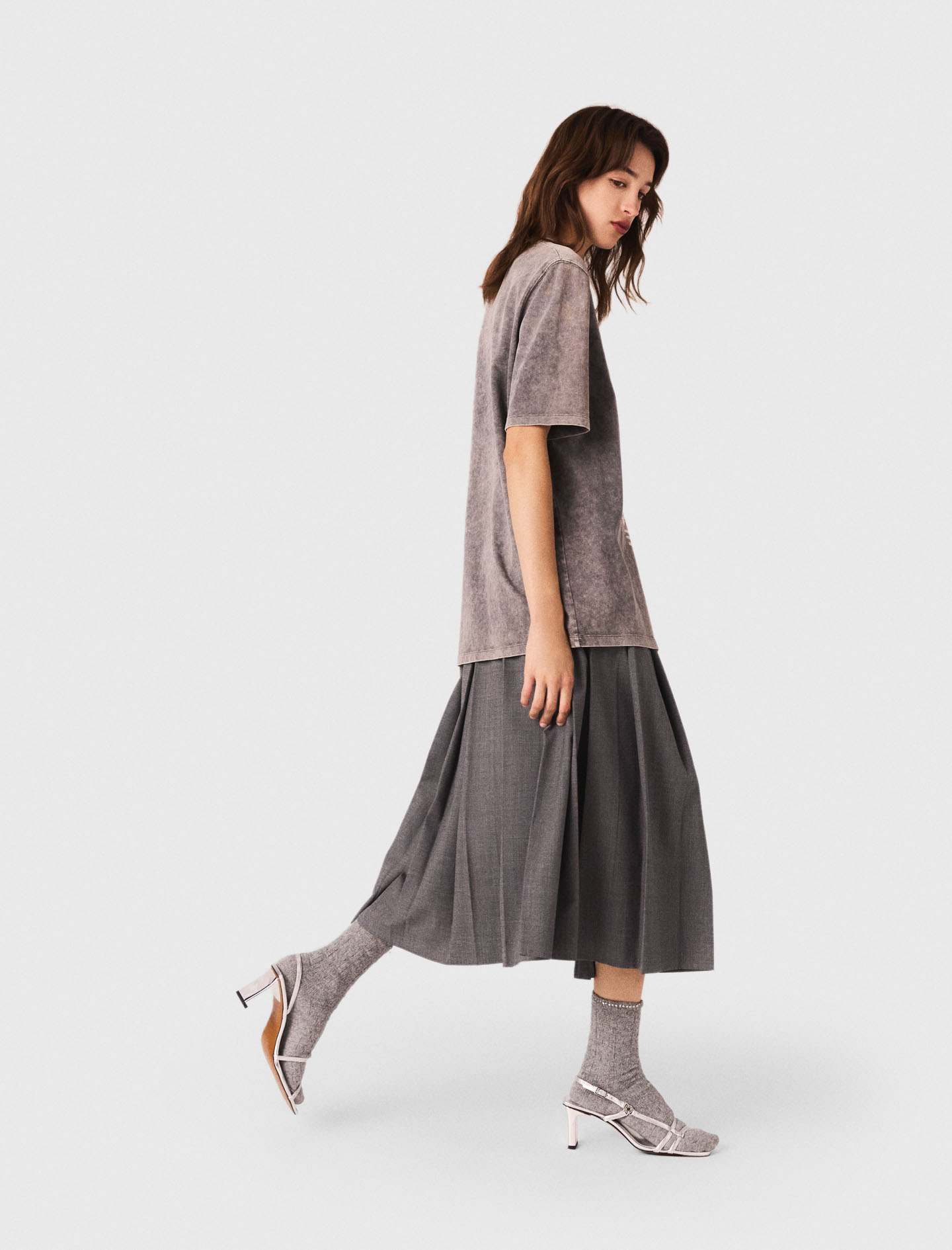 tuck it into a structured midi skirt or layer it over wide-leg trousers with heels for a look that is twisted, retro and contemporary all at once..