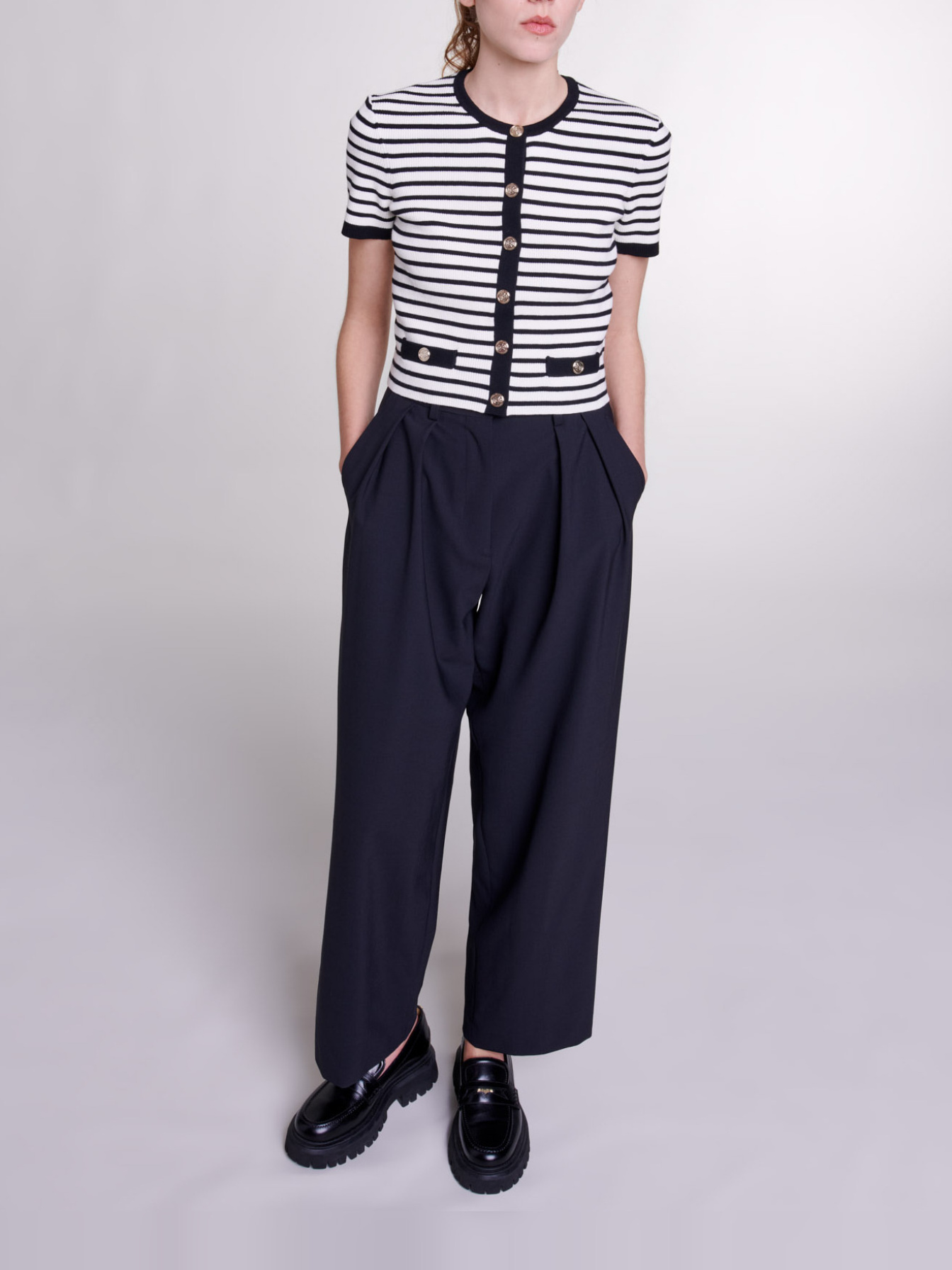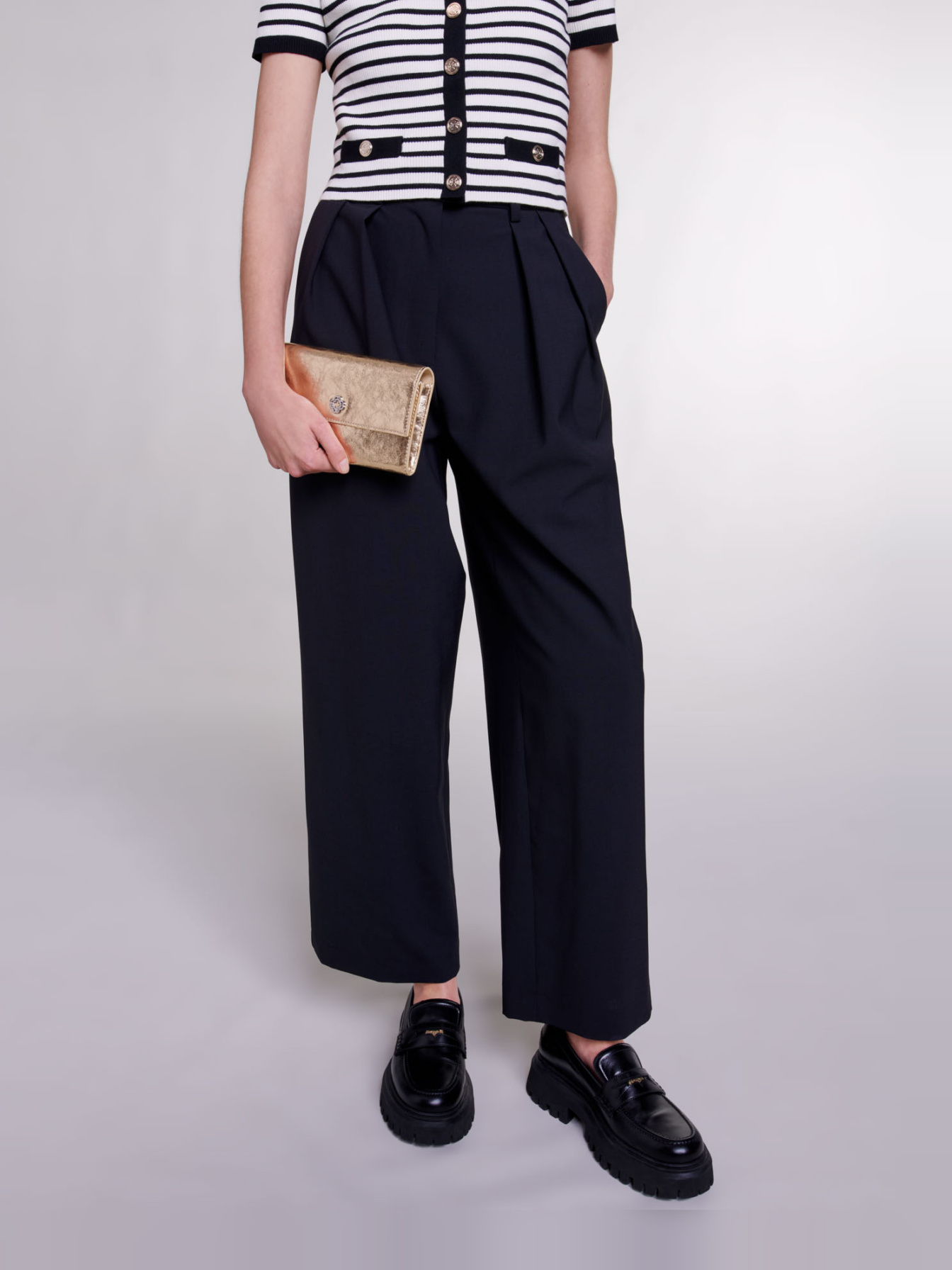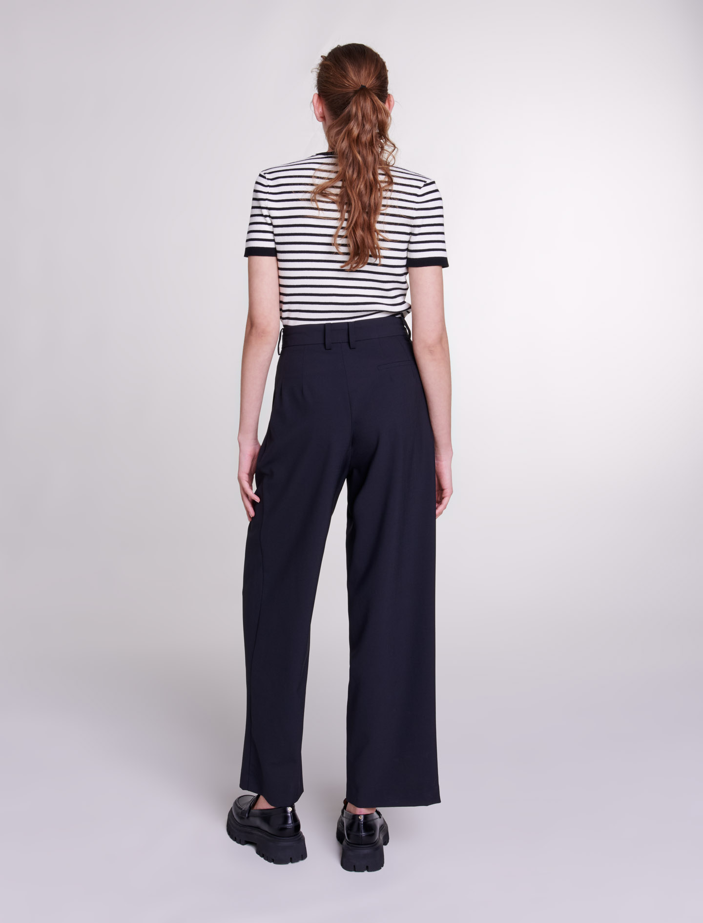 Maje Woman's polyester Wide-leg trousers with belt for Fall/Winter, in color Black / Black