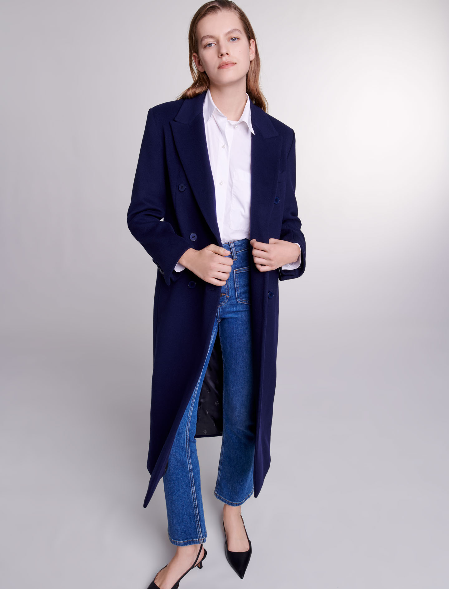 Maje Woman's virgin Long coat for Fall/Winter, in color Navy / Blue