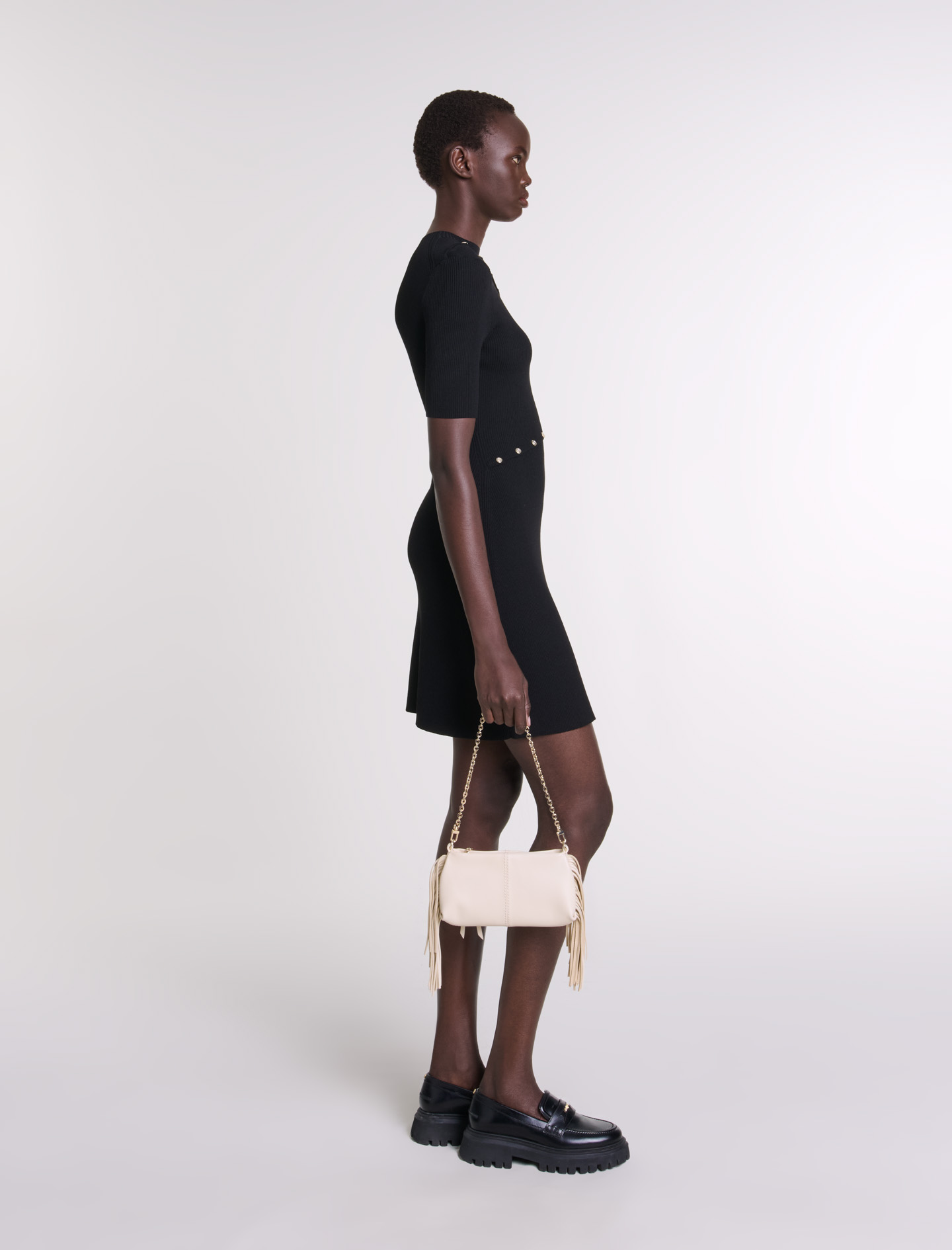 Made from ribbed knit, this black dress has a short, close-fitting cut and is finished with small gold signature buttons engraved with clovers.