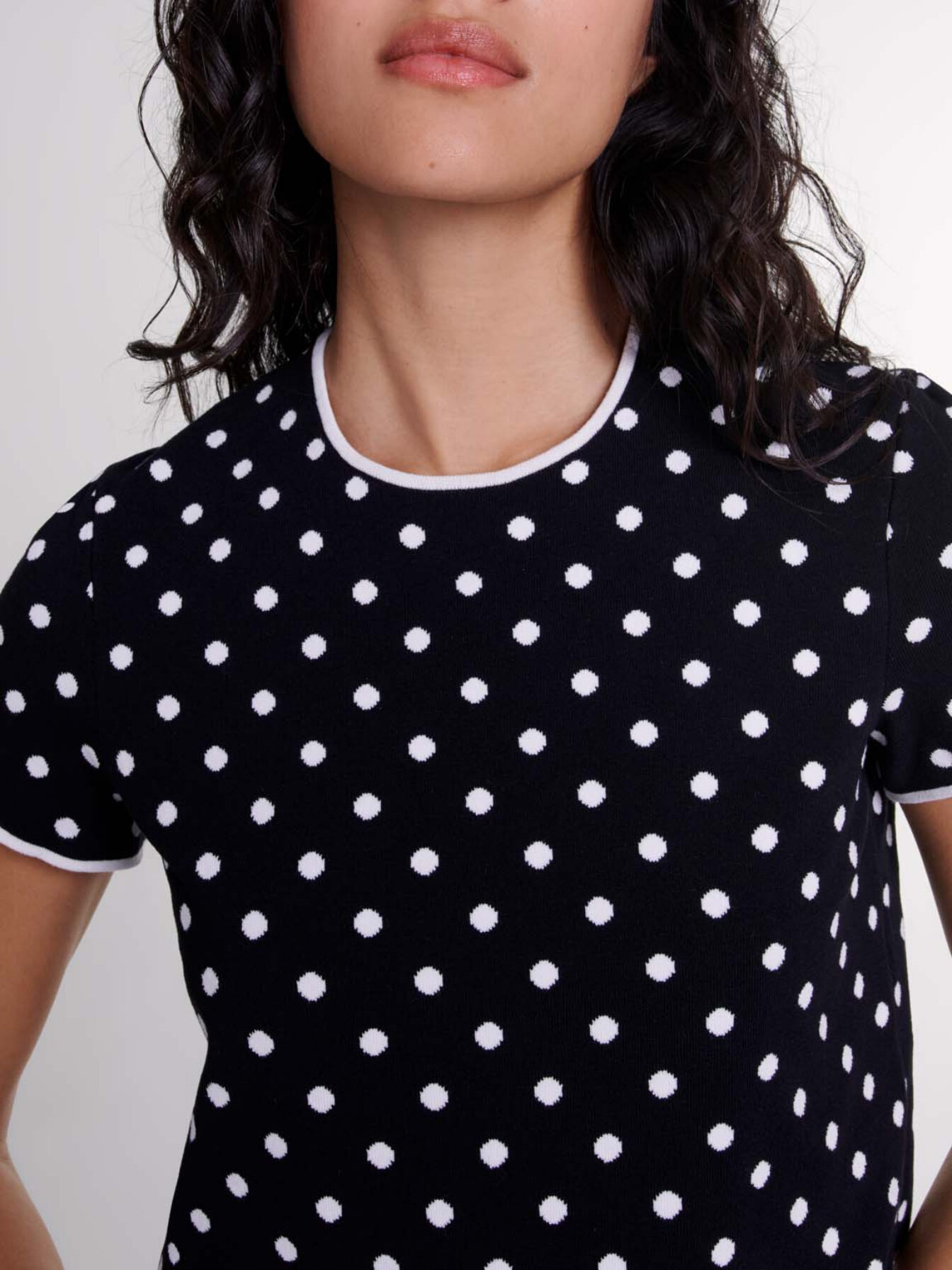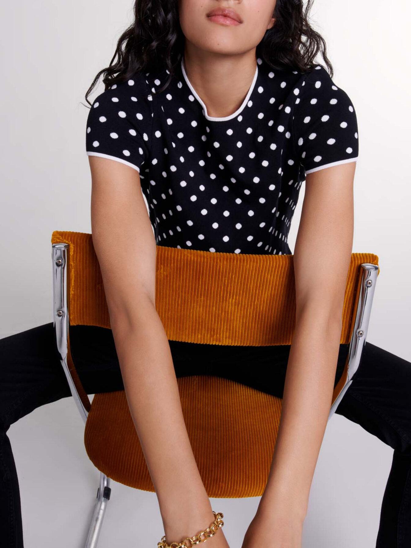 Maje viscose Featuring a round neck, short sleeves and a contrasting trim, this stretch-knit crop top has an all-over polka-dot motif and a gold Clover tag.