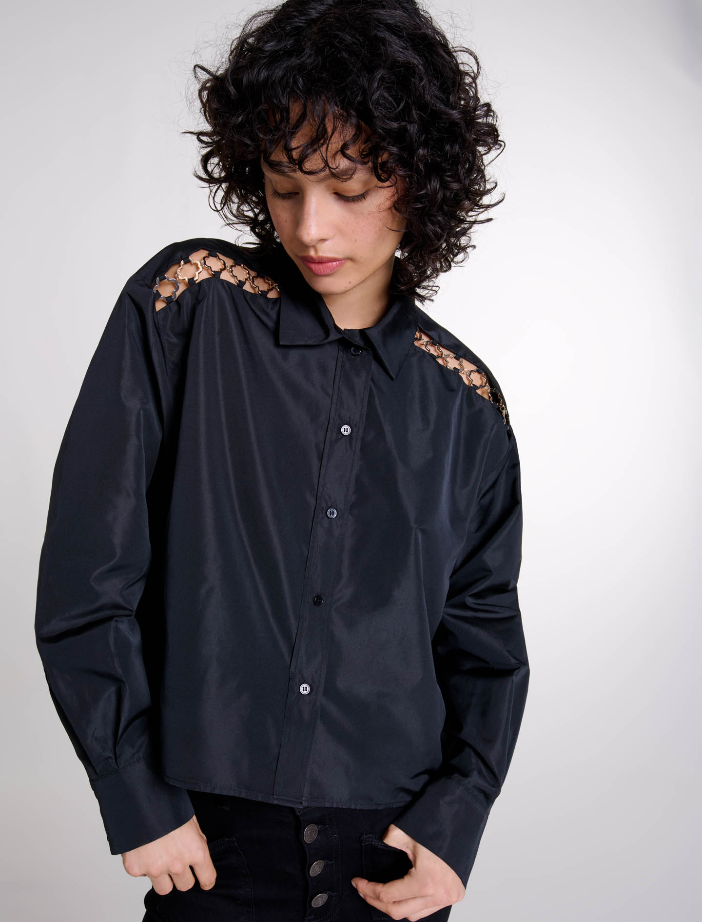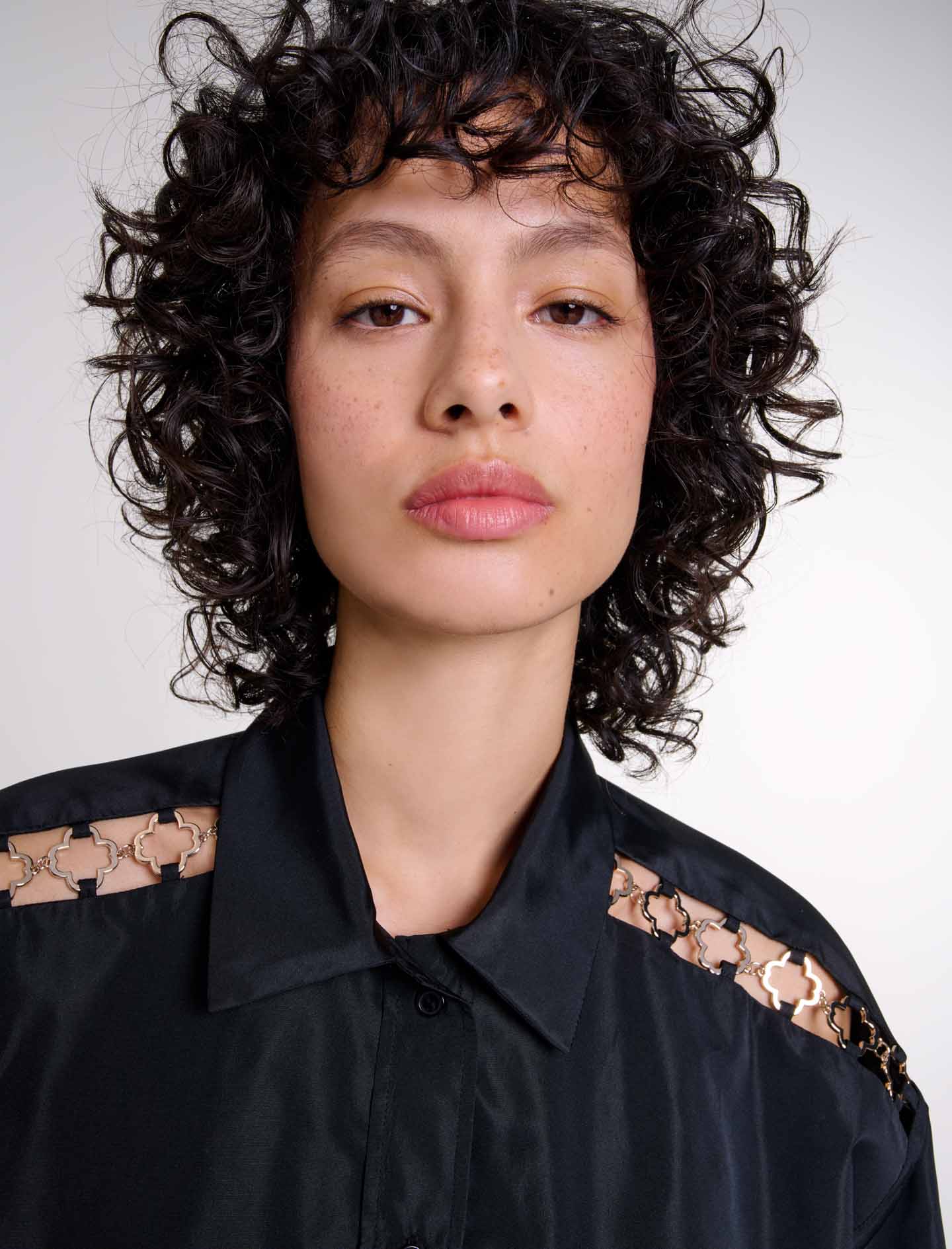 Maje Woman's polyester Openwork shirt for Fall/Winter, in color Black / Black