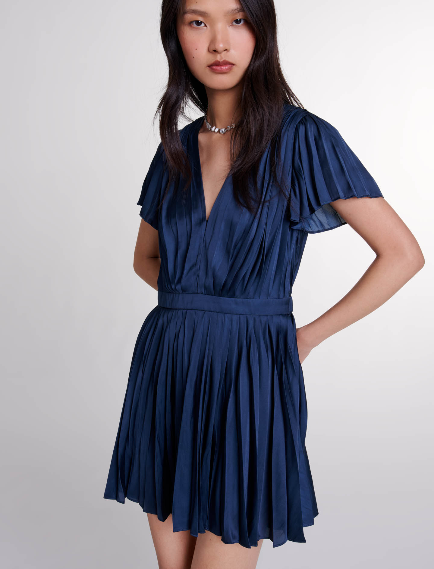Maje polyester This short satin-effect dress is exquisitely pleated for a light, elegant silhouette.