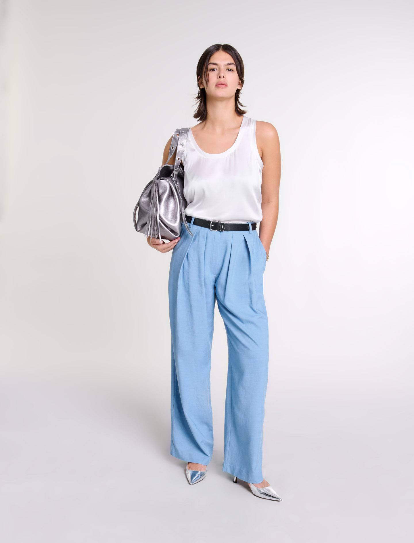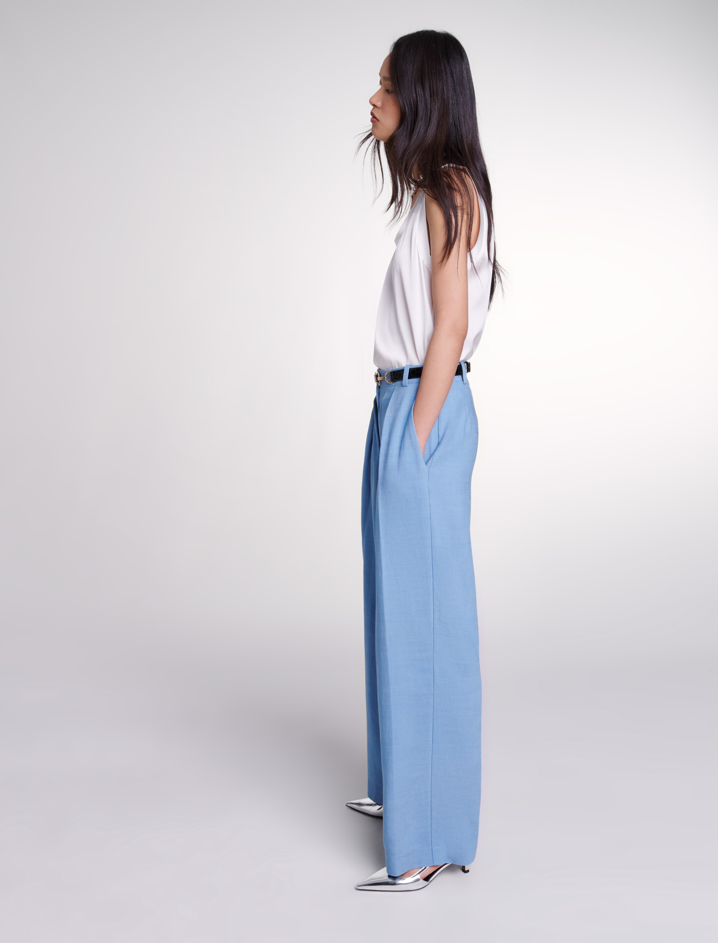Maje Woman's viscose Wide-leg suit trousers with pleats for Fall/Winter, in color Blue / Blue
