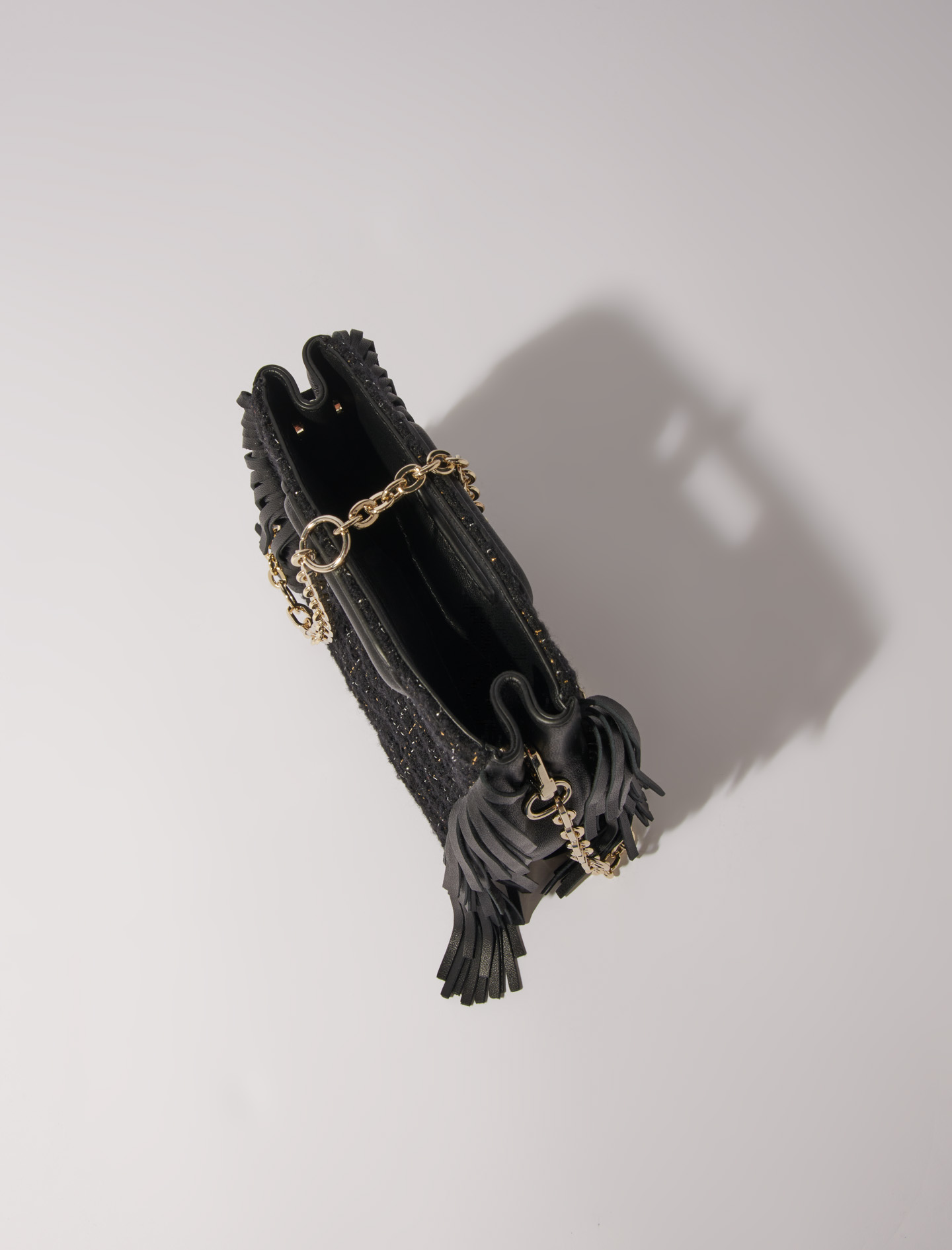 Maje Woman's wool Quilted tweed mini M bag for Fall/Winter, in color Black / Black