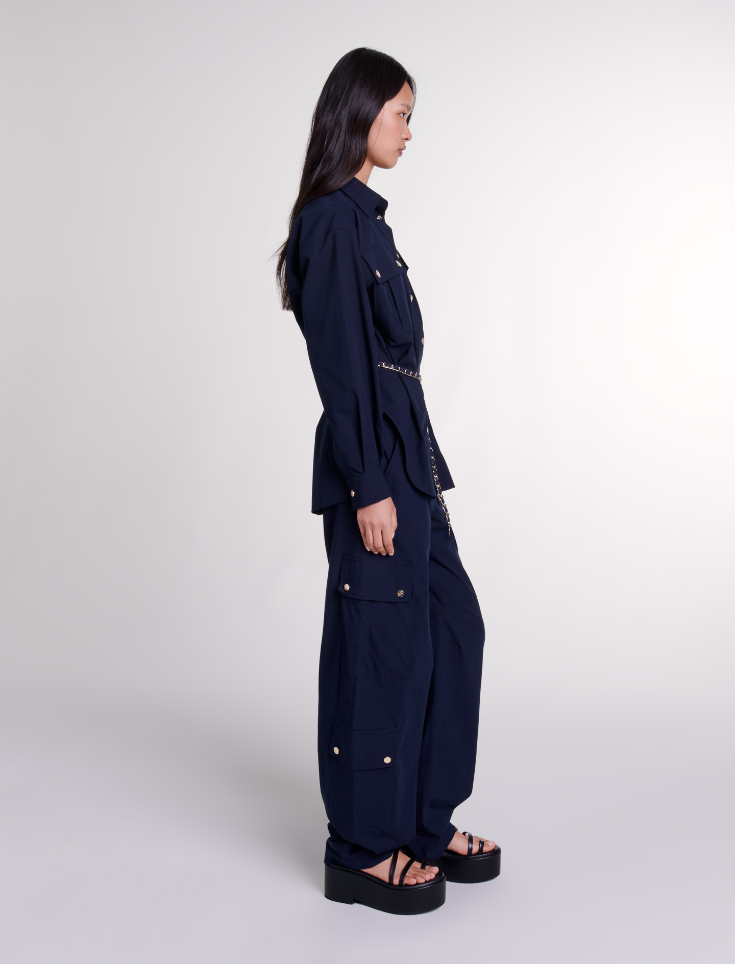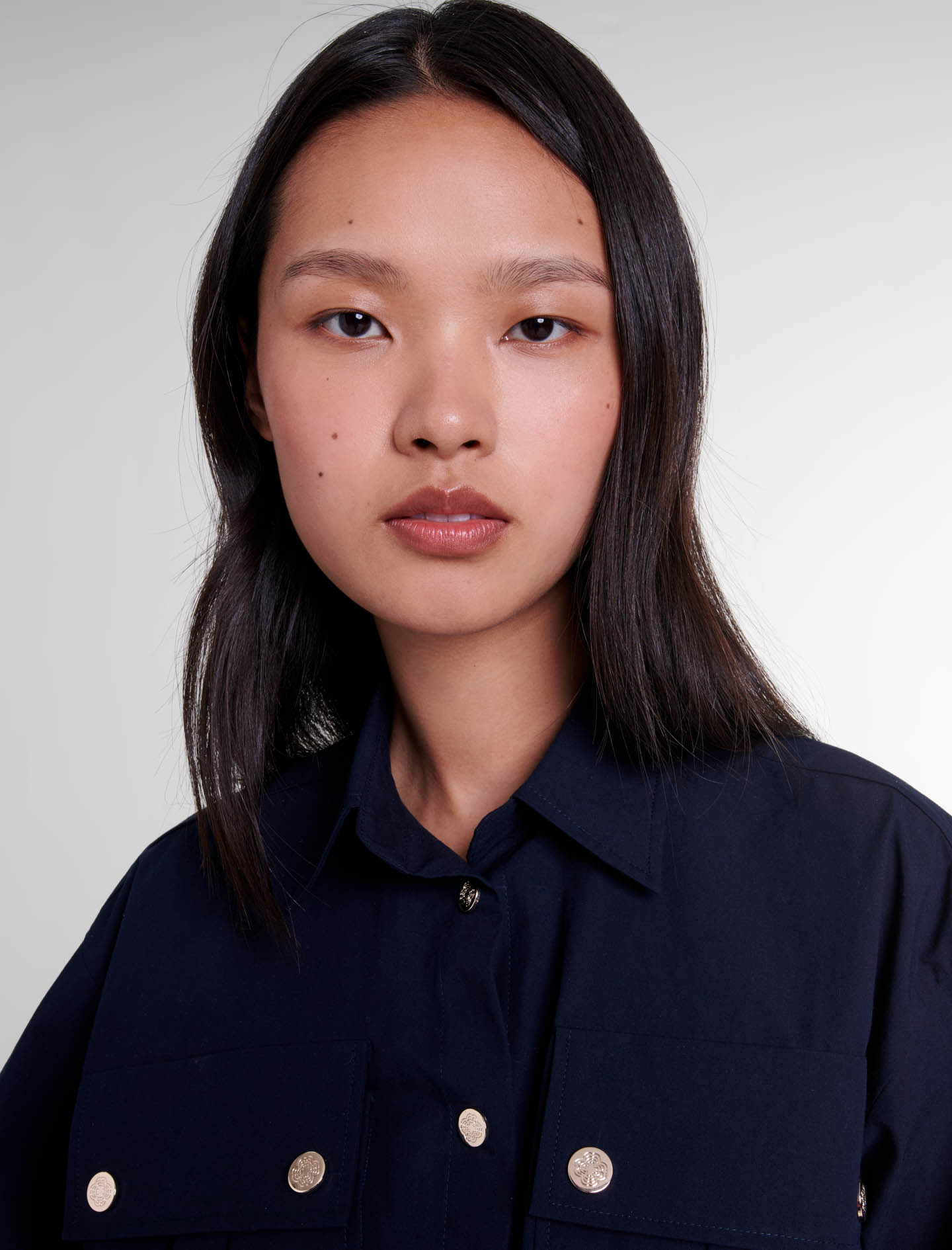 Maje cotton Both elegant and casual, this thick cotton shirt has two chest pockets with gussets and flaps and a gold Clover press stud fastening.