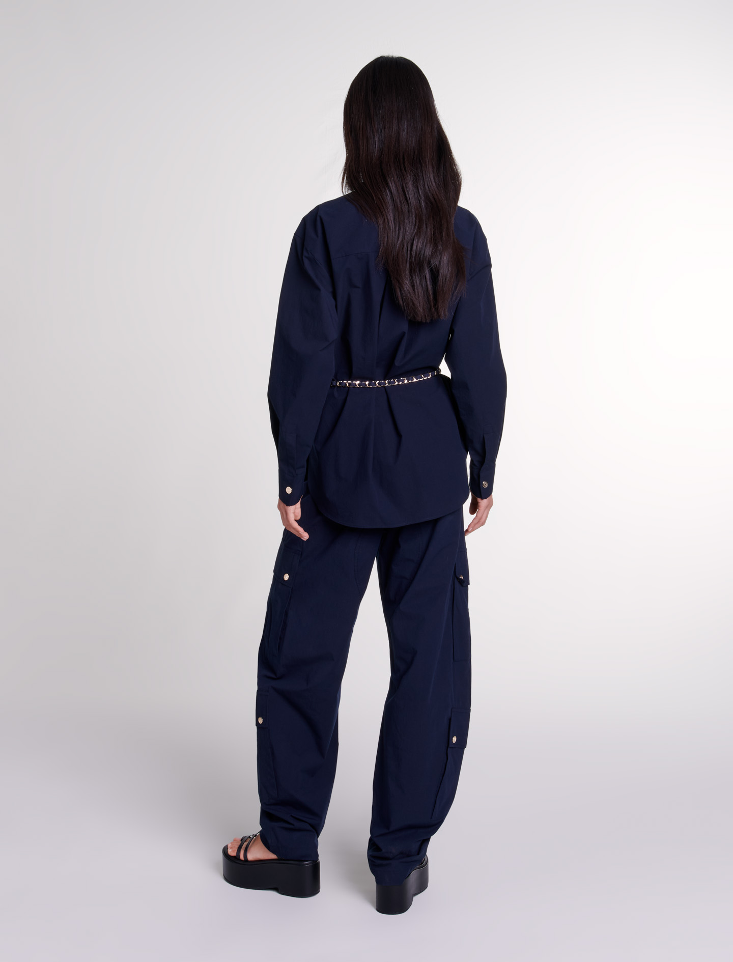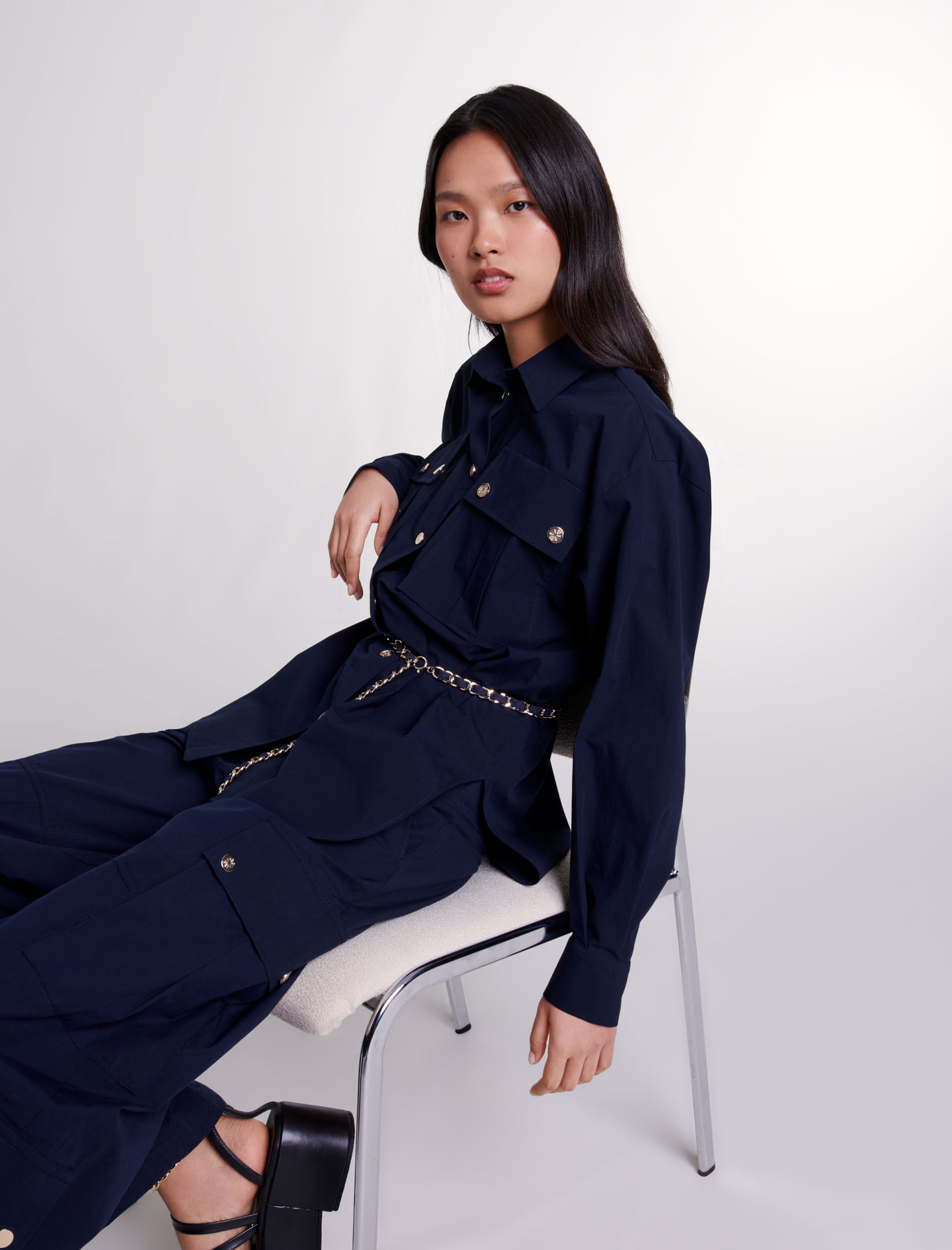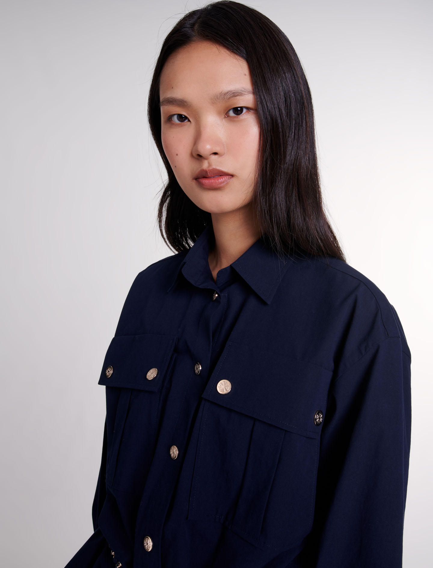 Maje Woman's cotton Belted long shirt for Fall/Winter, in color Navy / Blue