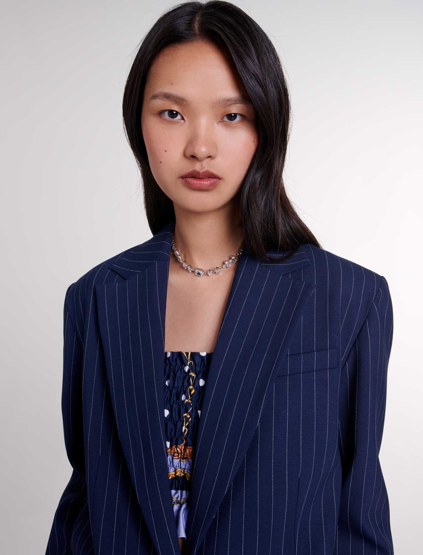 Maje Woman's wool Striped suit jacket for Fall/Winter, in color Navy tennis stripe /