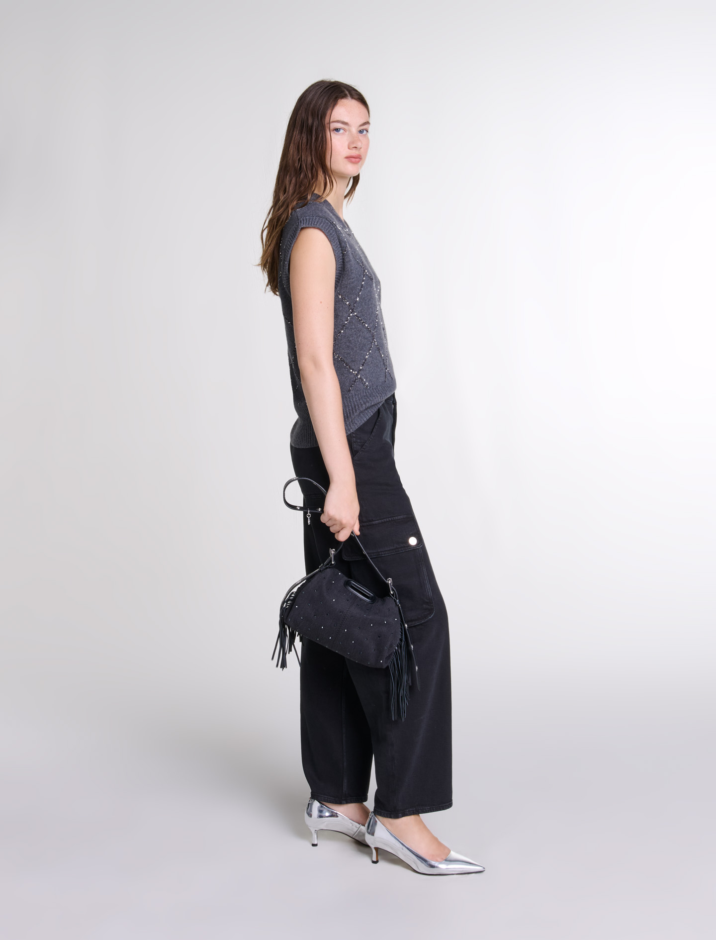 Maje Woman's wool Sleeveless sequin jumper for Fall/Winter, in color Anthracite grey /