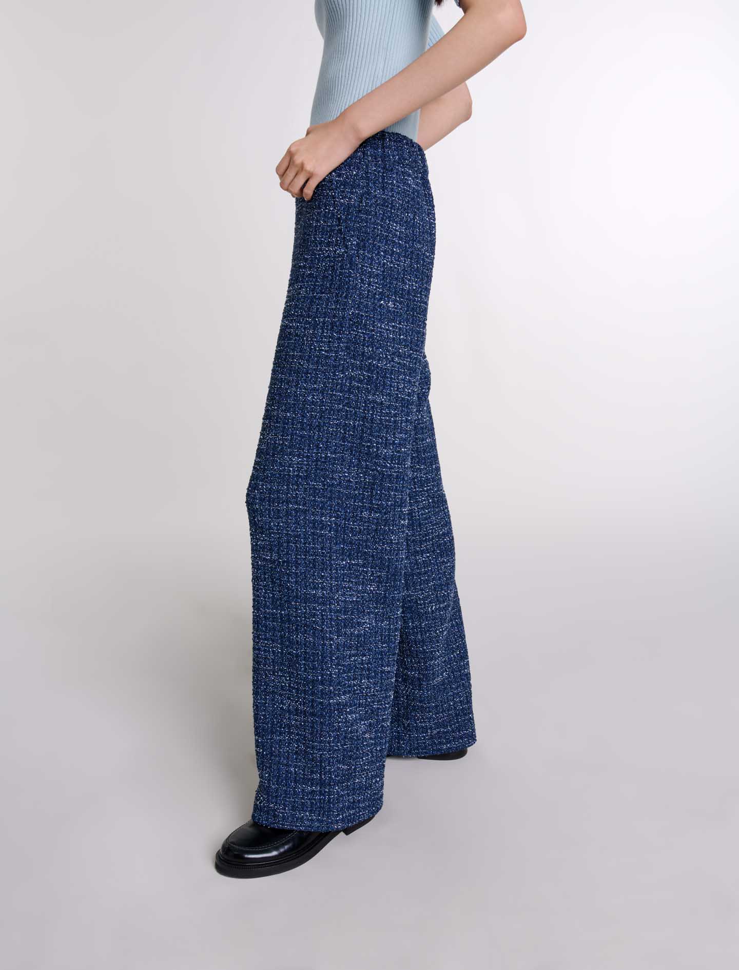 Maje Woman's cotton Wide-leg tweed trousers for Fall/Winter, in color Blue / Blue