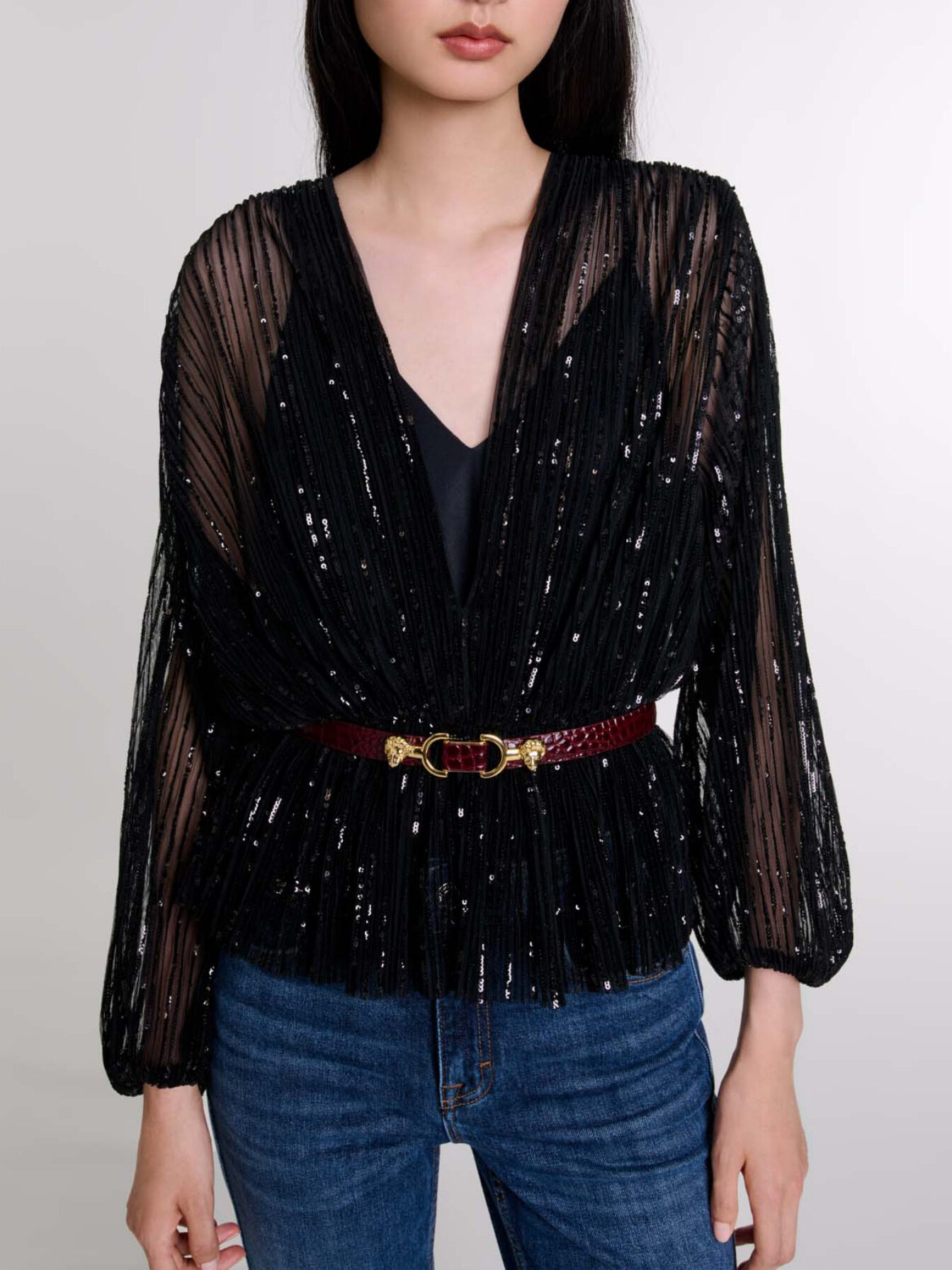 Maje Woman's polyester Belted sequin shirt for Fall/Winter, in color Black / Black
