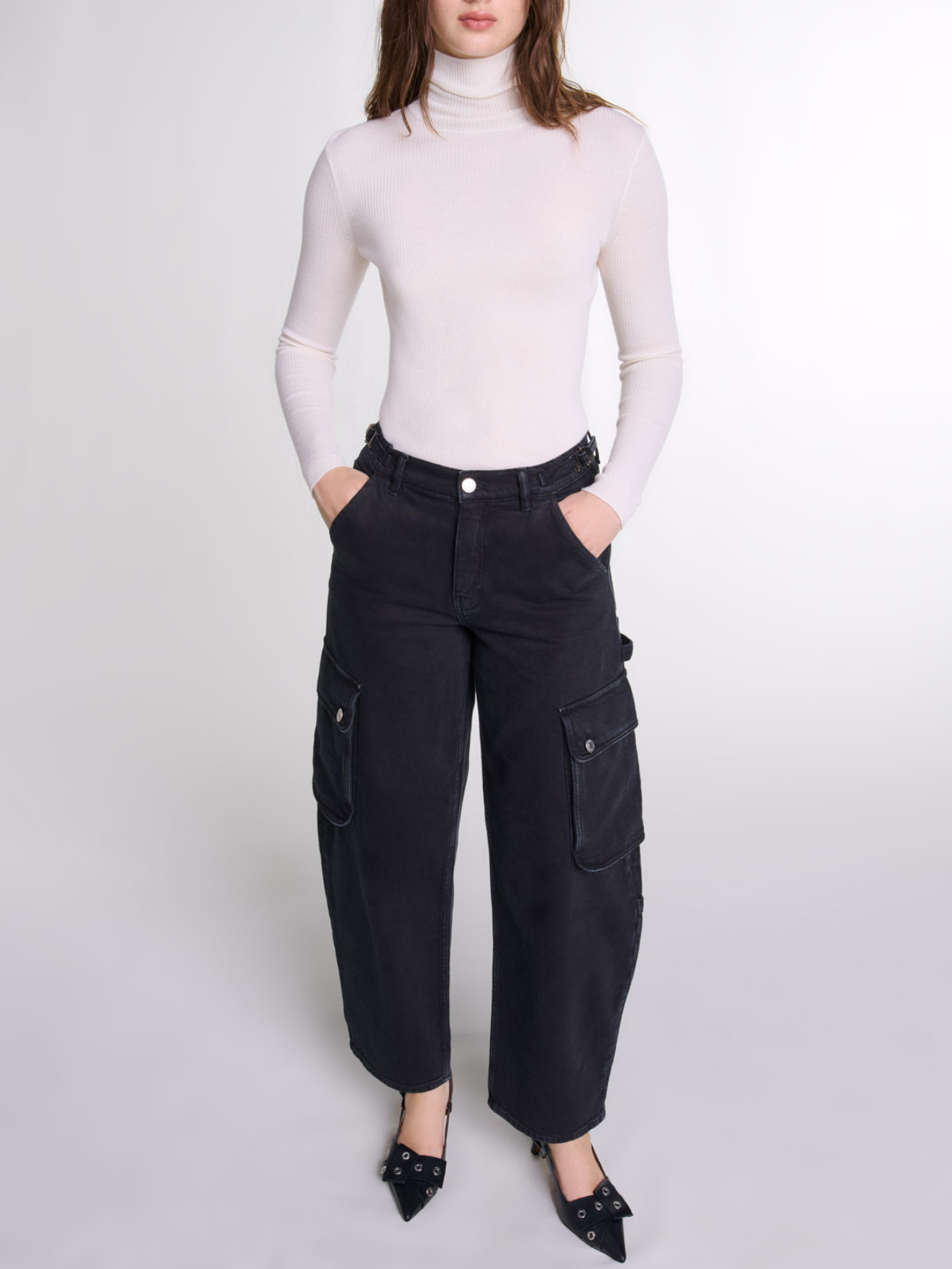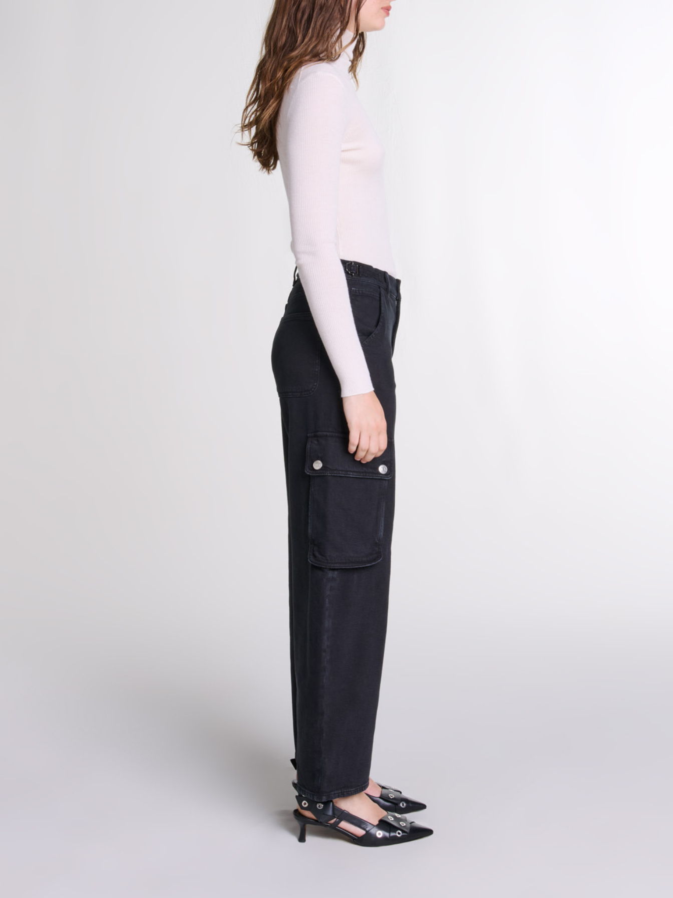 Maje Woman's cotton Cargo jeans for Fall/Winter, in color Black / Black
