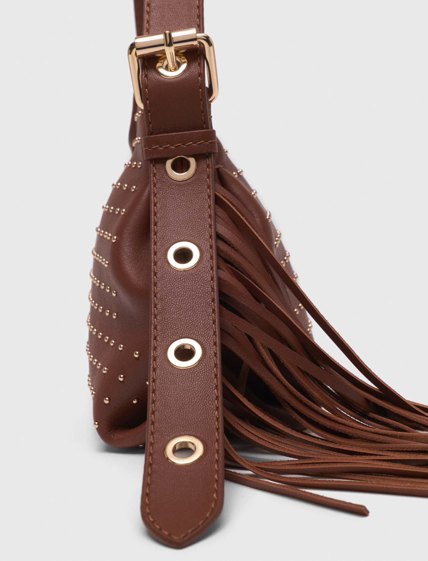 Maje Woman's leather Miss M mini leather studded bag for Fall/Winter, in color brown /
