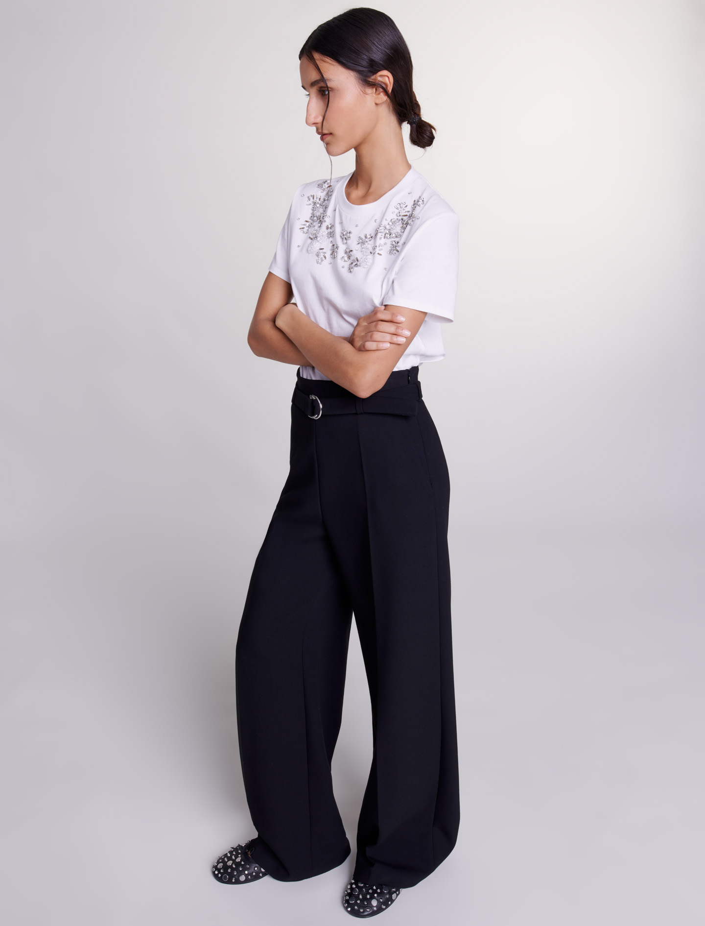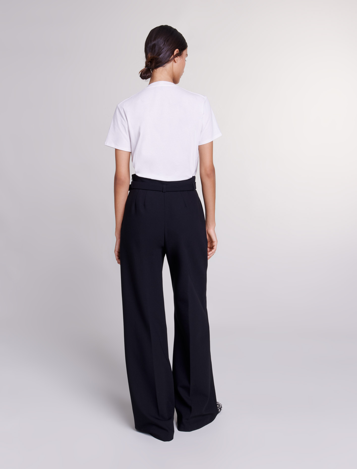 Maje Woman's polyester Wide leg pants with belt for Fall/Winter, in color Black / Black